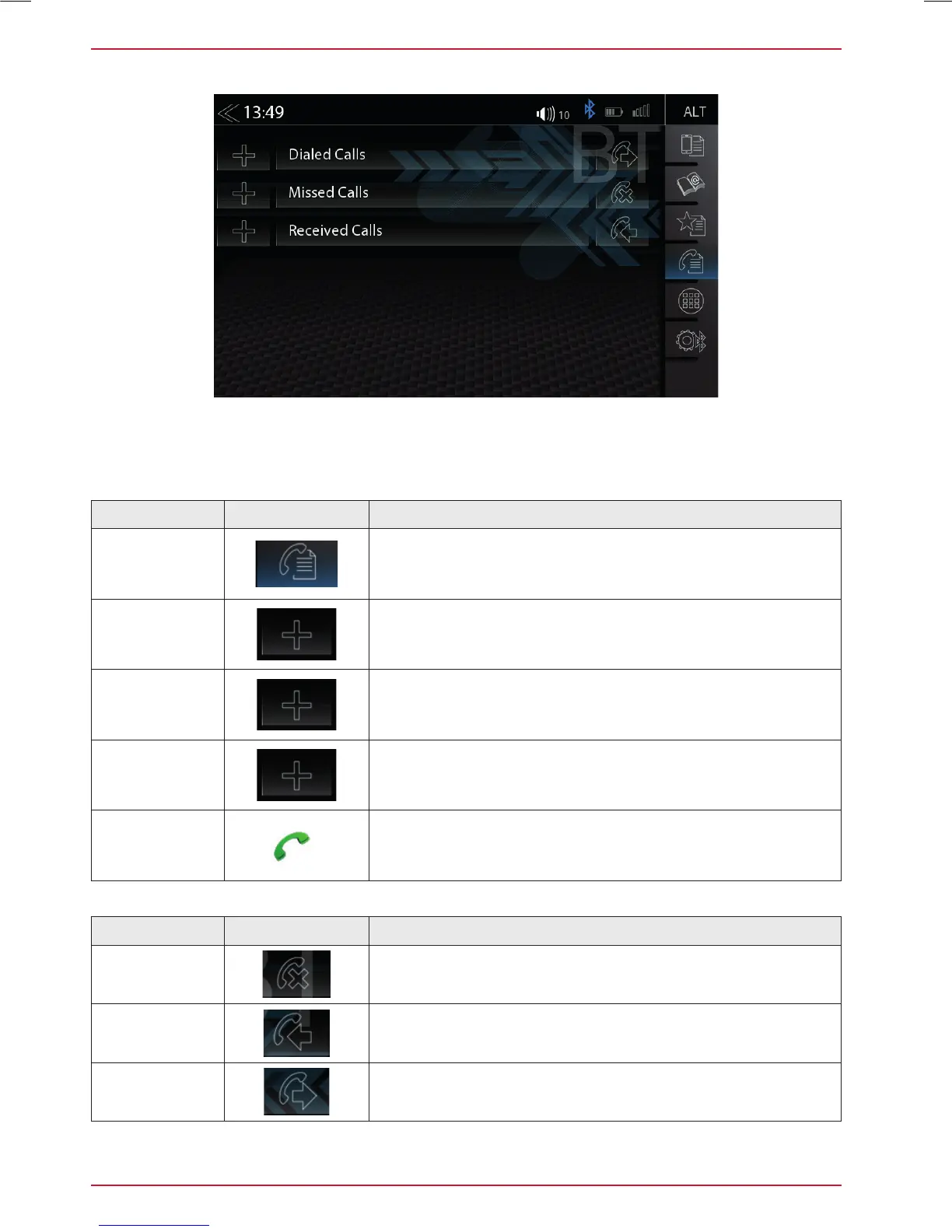 If a compatible mobile phone is connected, call lists from the mobile phone will be synchronized