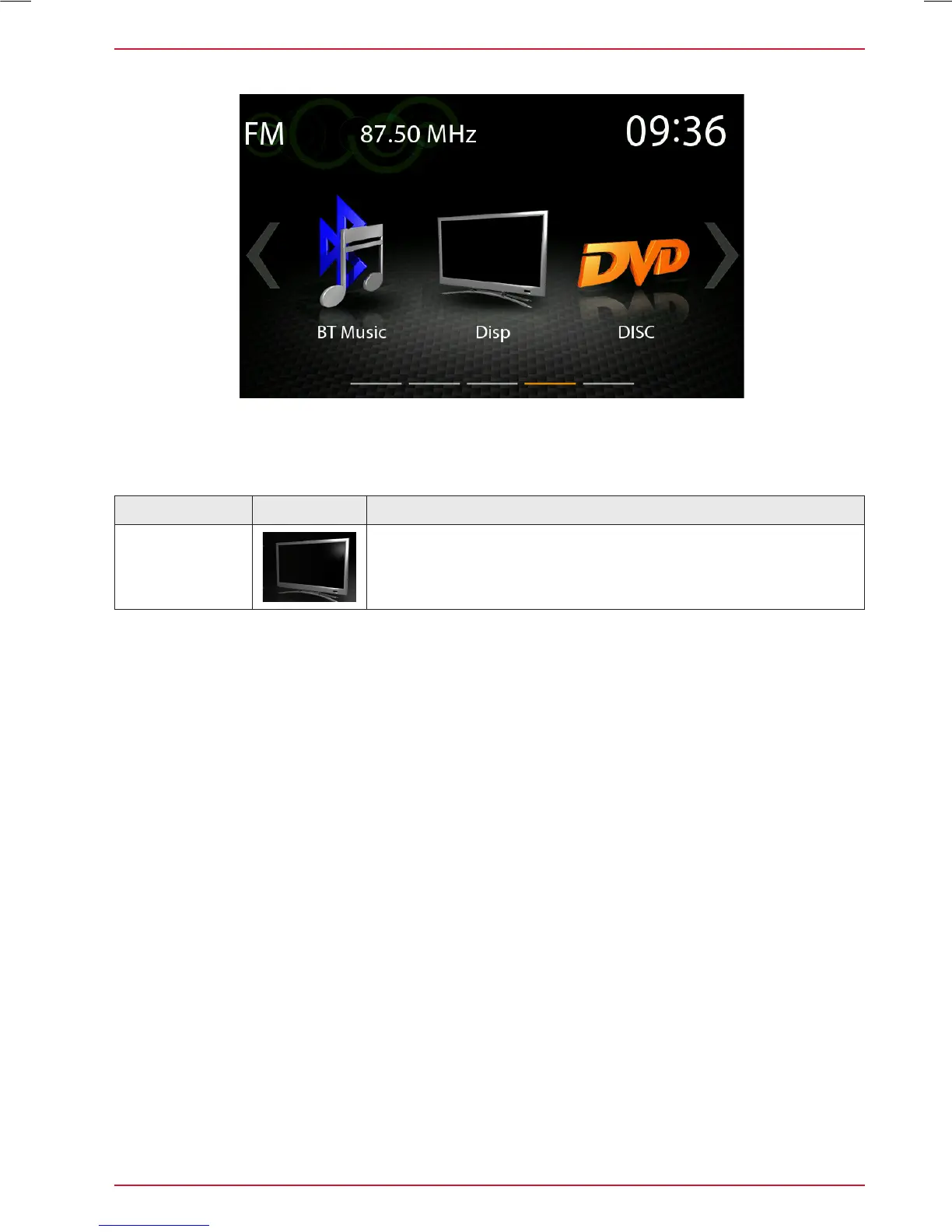 With the display icon, the LCD TFT screen picture brightness can be dimmed or switched off