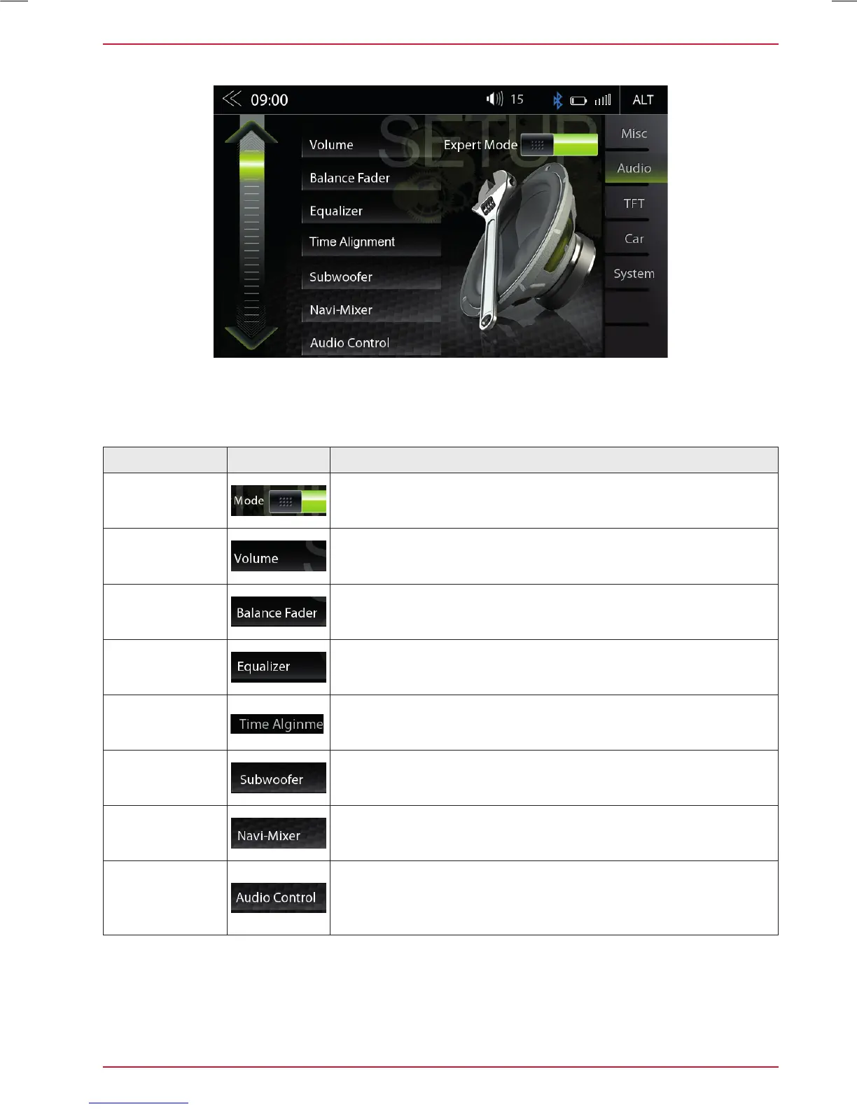 settings. Such as Equalizer, Time Alignment, Navi-Mixer, etc. Please refer to the listings on the