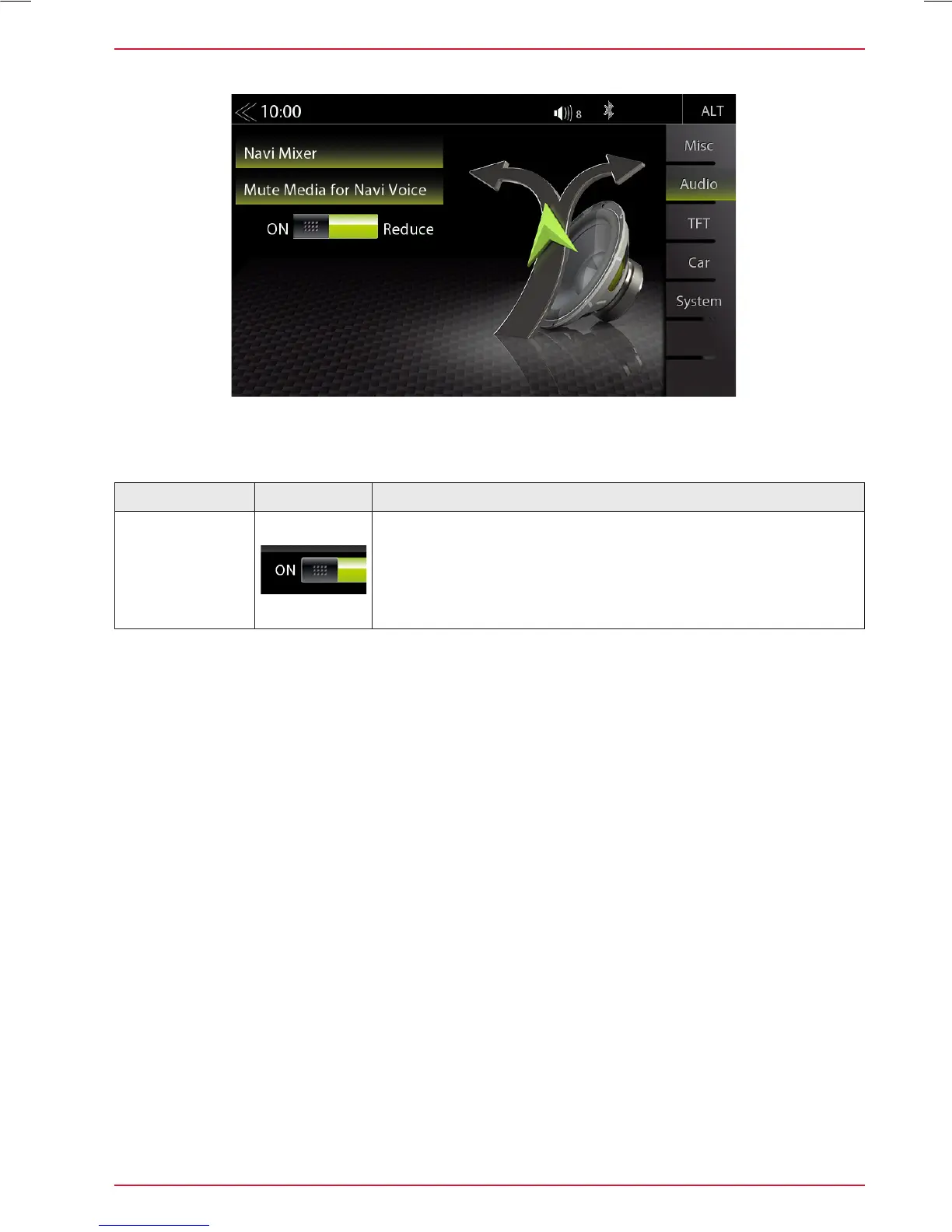 ON = Media playback is fully muted during route guidance