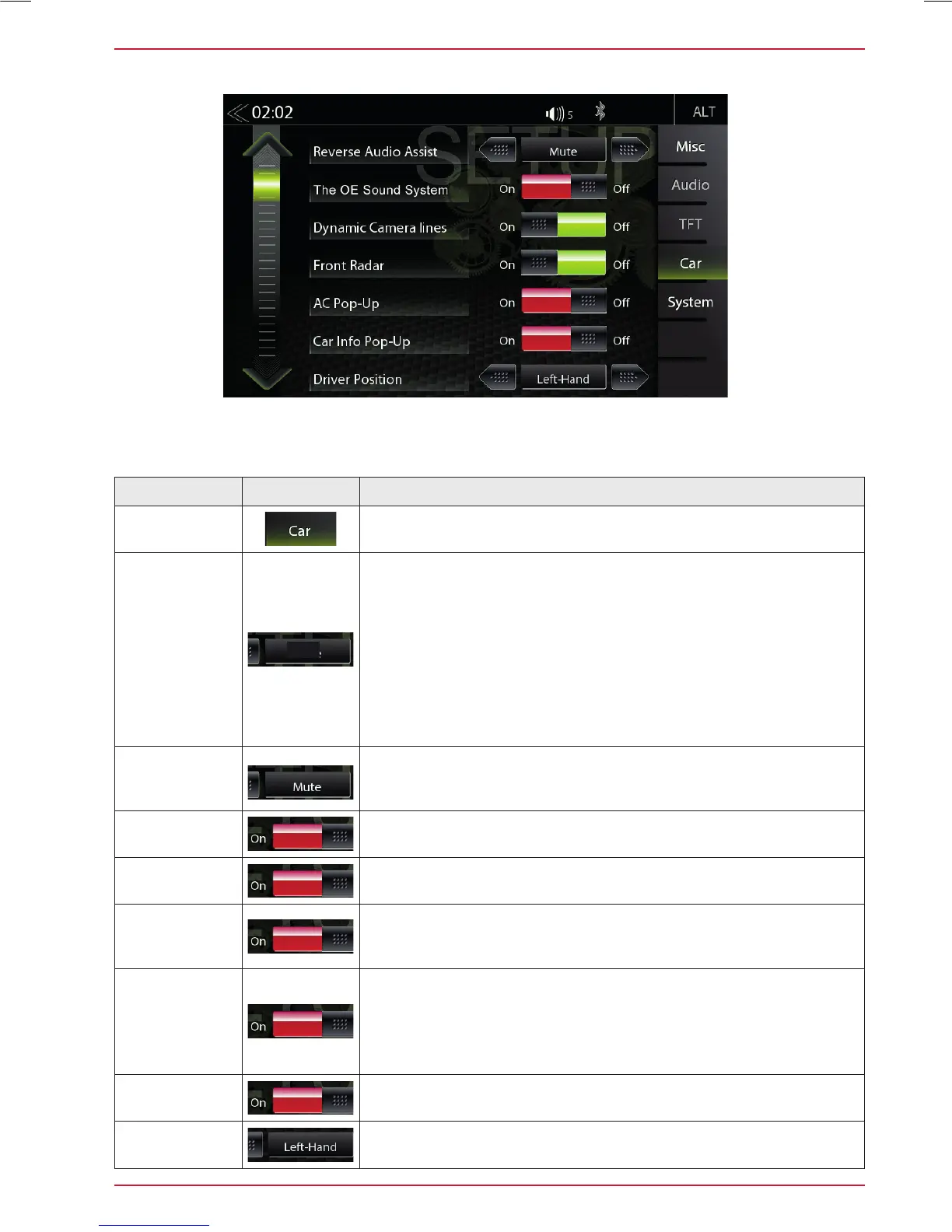 In the Car Setup menu, you can set how the ZENEC device interacts with optional components such