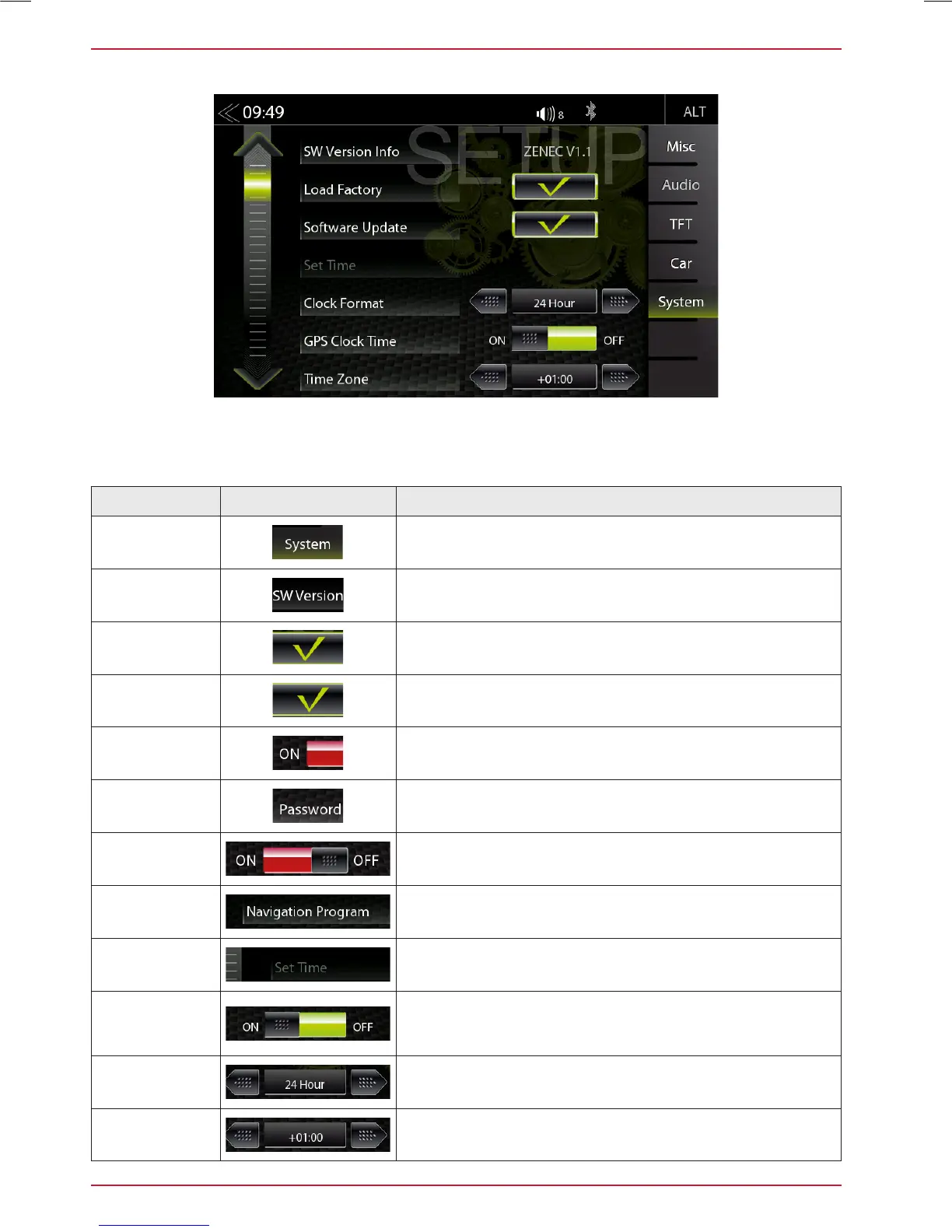 In the System Setup menu page, you can make various system settings, such as: Adjust the Clock