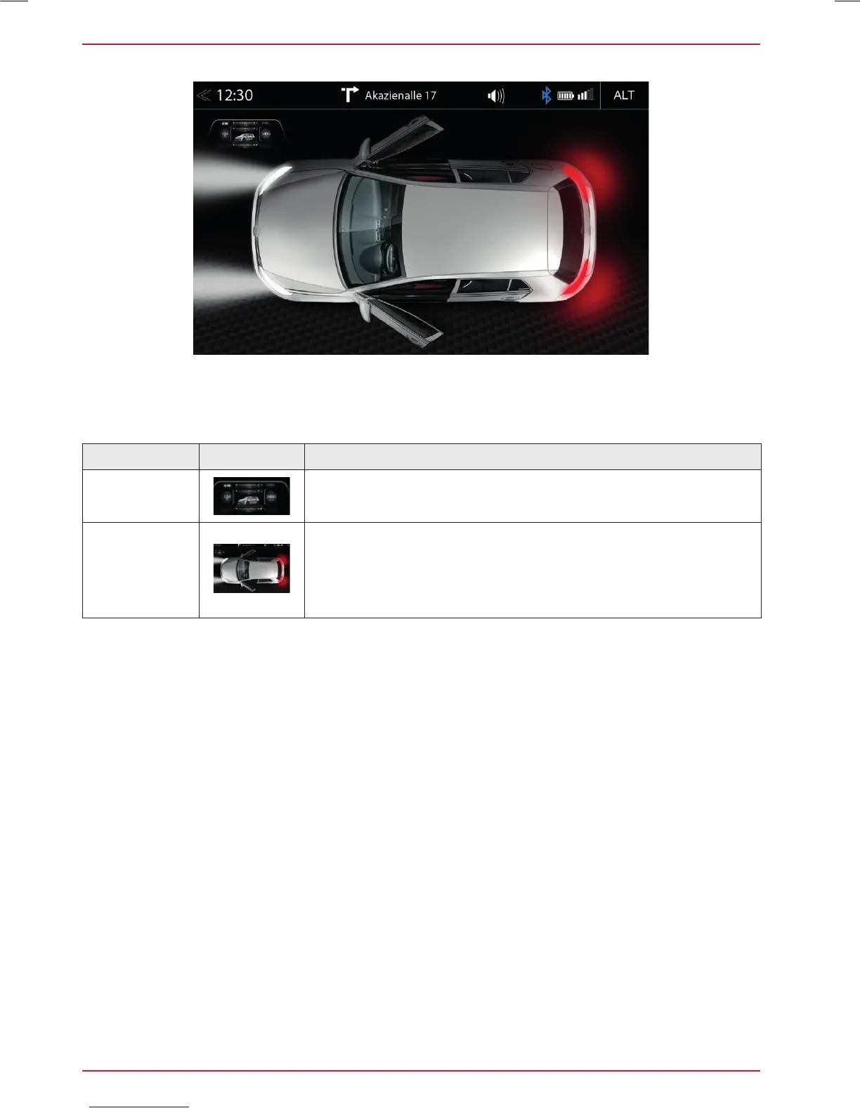 (Visual status display of all doors, vehicle lights, car-trunk and