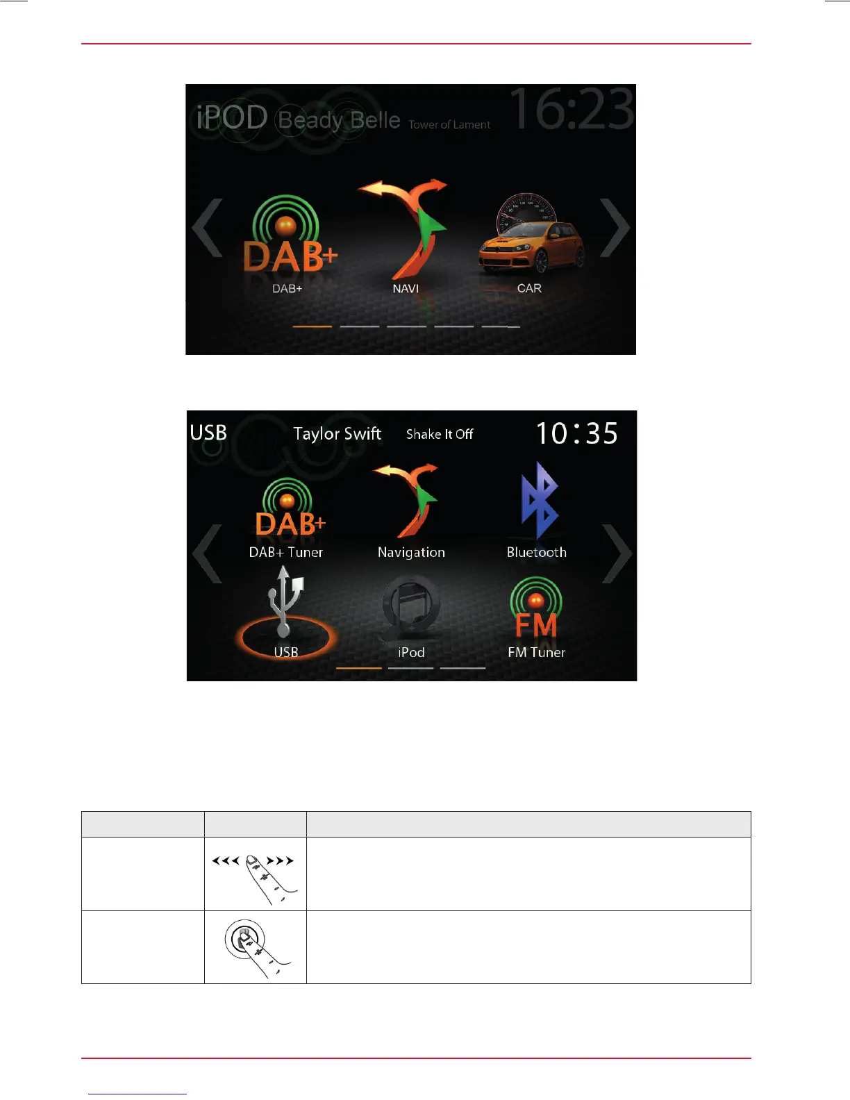 Swipe to navigate in the main menu by sliding to the left or right