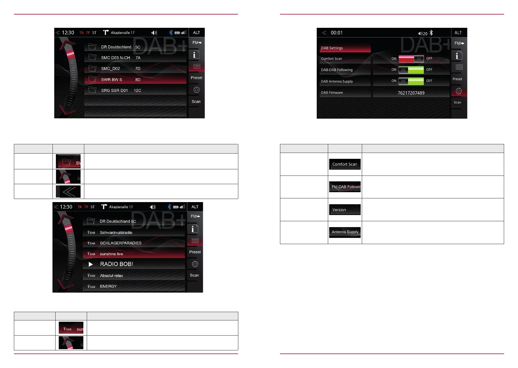 The setup page for the DAB+ tuner allows to define important functions such as DAB<>DAB service