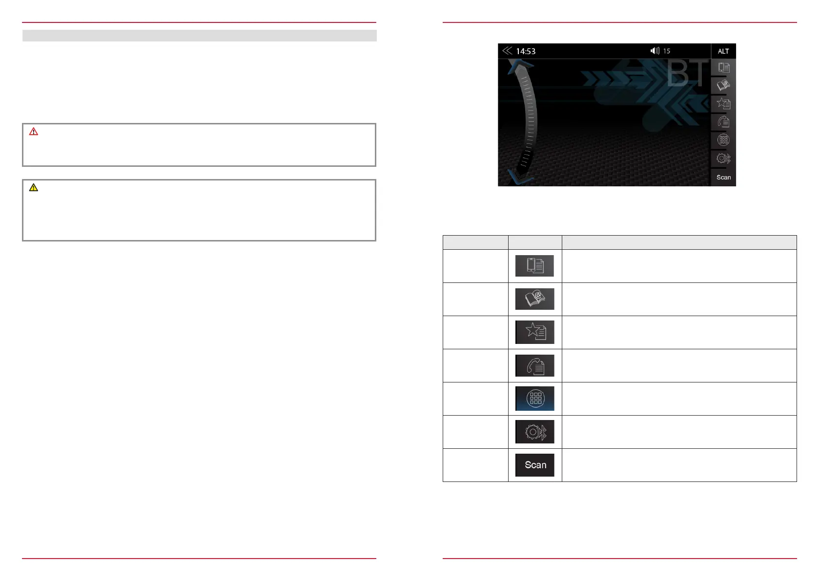 manager, or access phone book, favorites, call logs, numeric keypad, Bluetooth settings and Scan