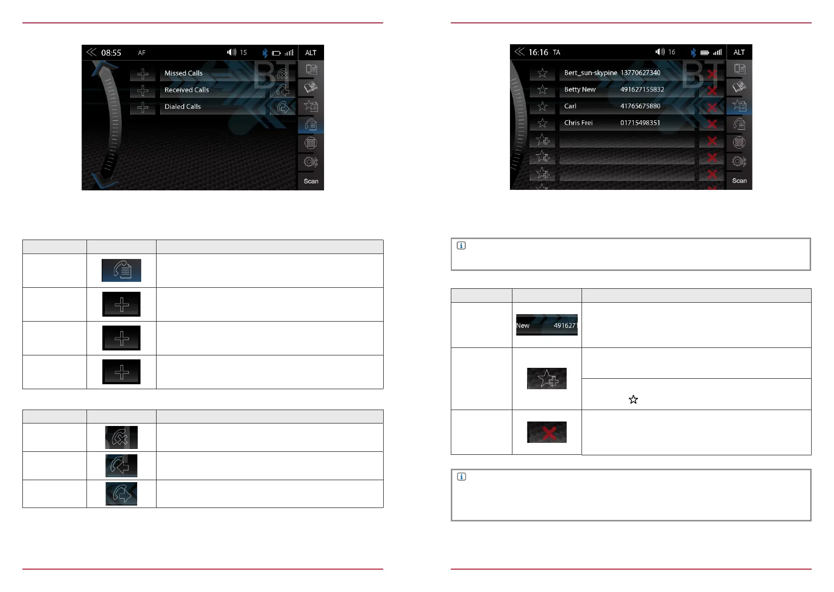 If a compatible mobile phone is connected, call lists from the mobile phone will be synchronized