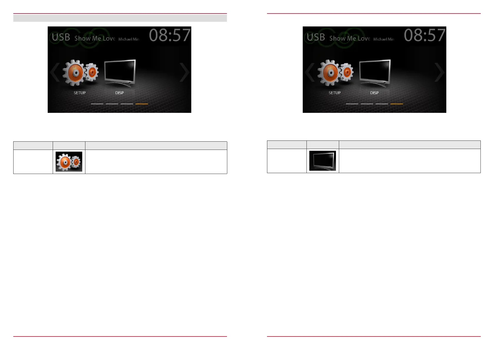 With the display icon, the LCD TFT screen picture brightness can be dimmed or switched off (standby)