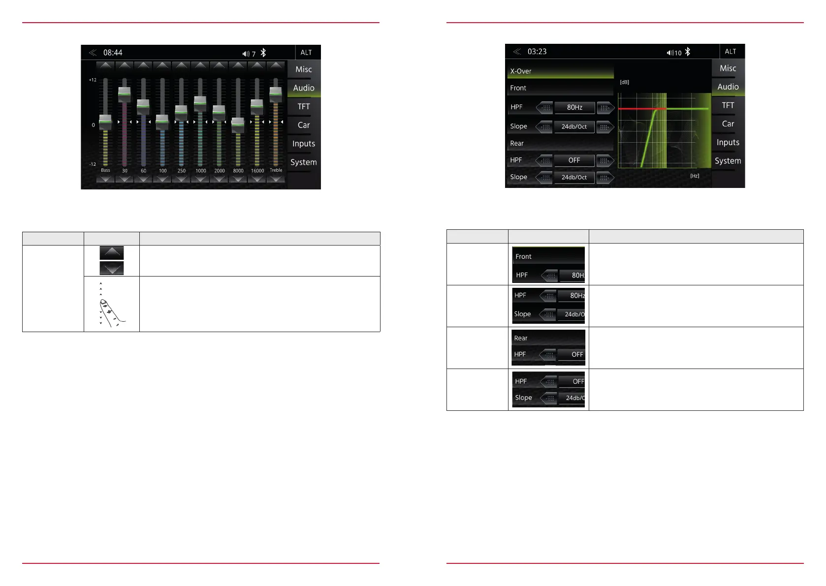 In this Expert Mode menu page, you can set the 8-band graphical equalizer. Press and hold the indivi-