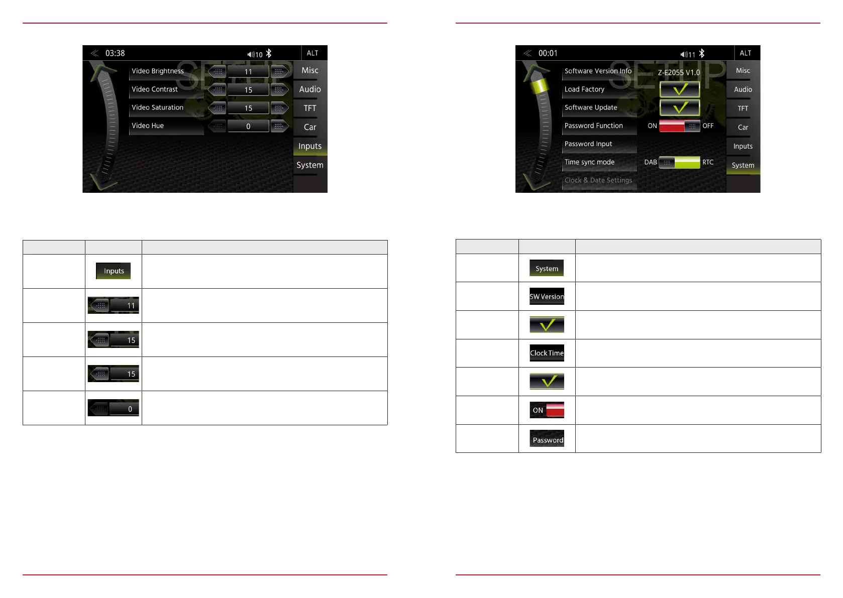 Reverse Cameras. Contrast, brightness, color saturation and hue can be adjusted.