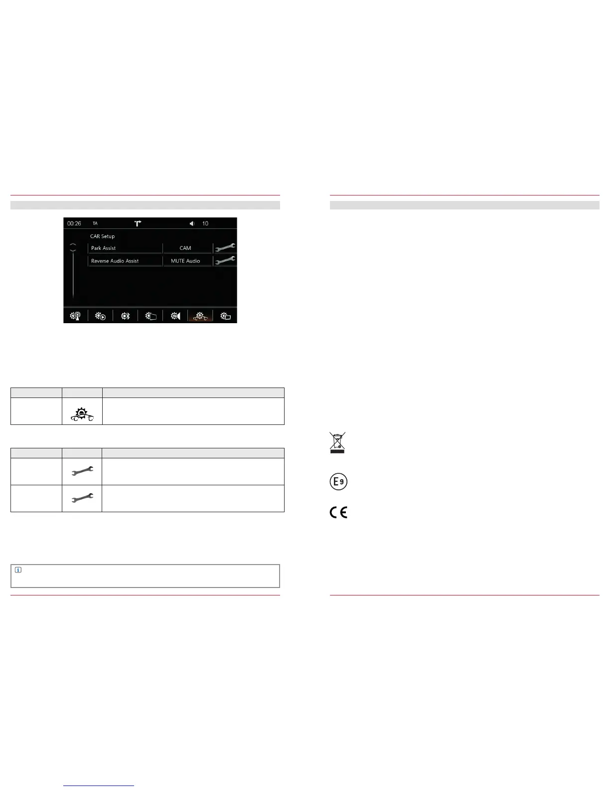 In this menu you can make all the settings specific to the car. You will find an explanation of the