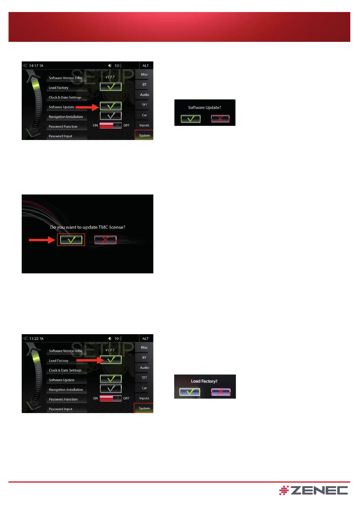 Setup>System>LoadFactoryundbestätigenSiediesdurchAntippendesgrünenHakens.