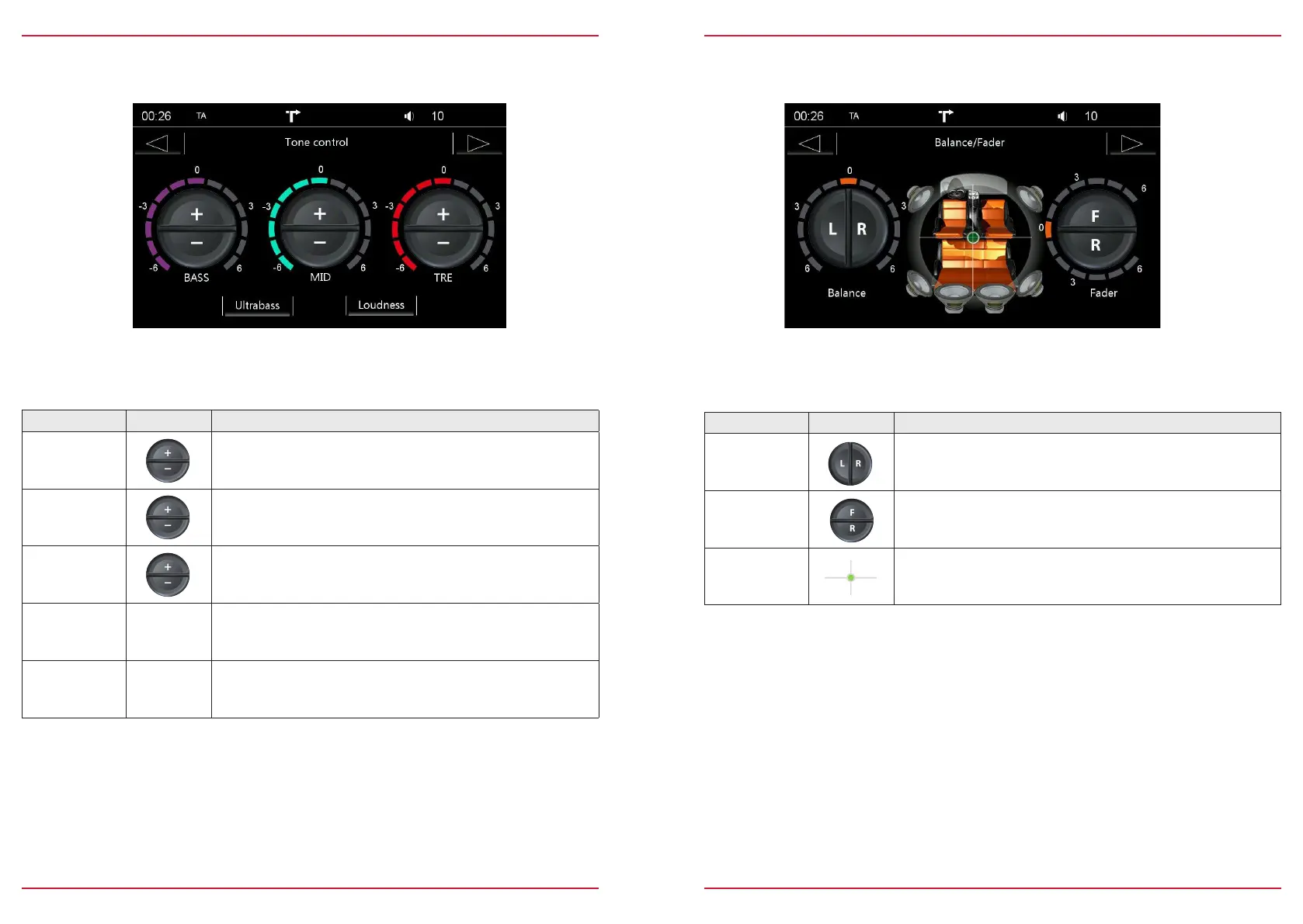 Antippen, um Lautstärkeverteilung links – rechts einzustellen
