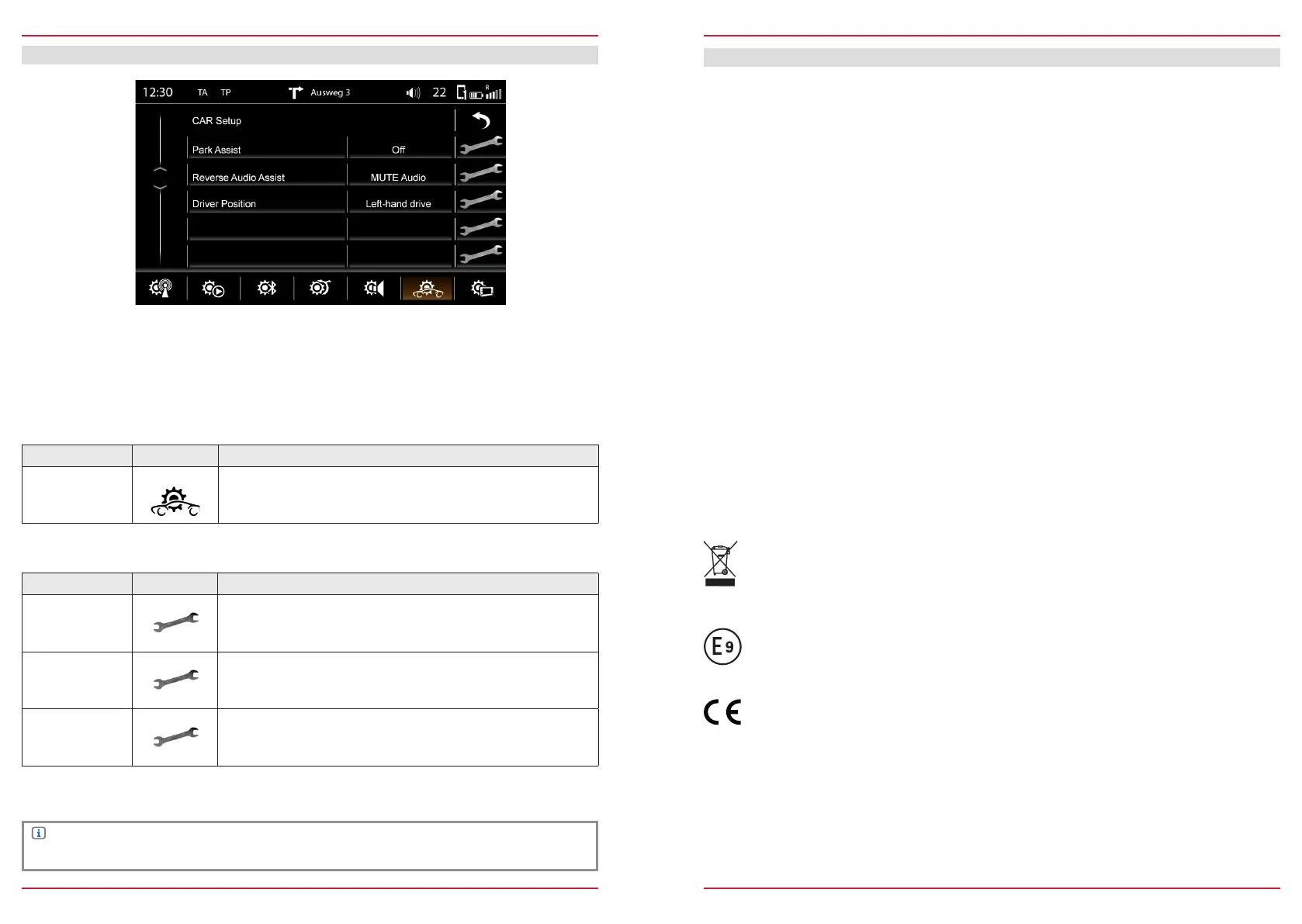 In this menu you can make all the settings specific to the car. You will find an explanation of the