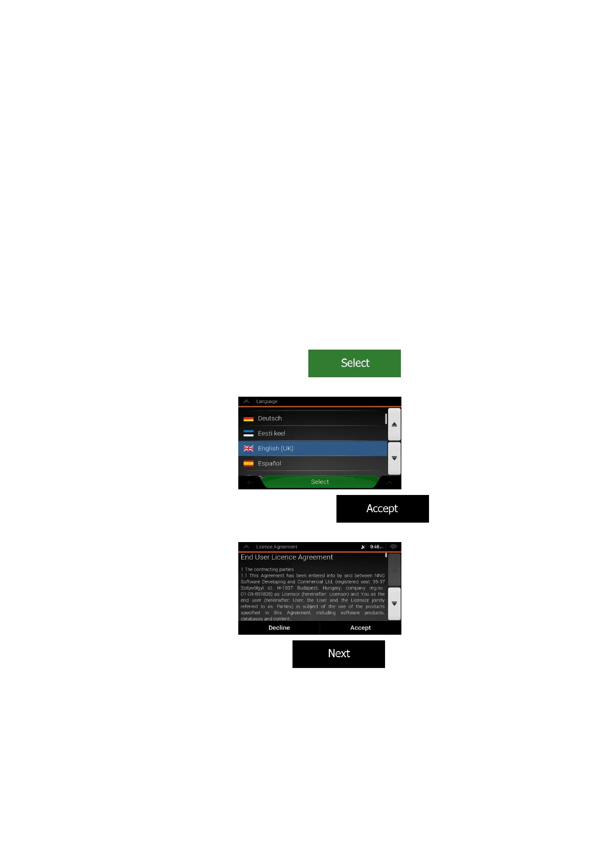 When using the navigation software for the first time, an initial set-up process starts