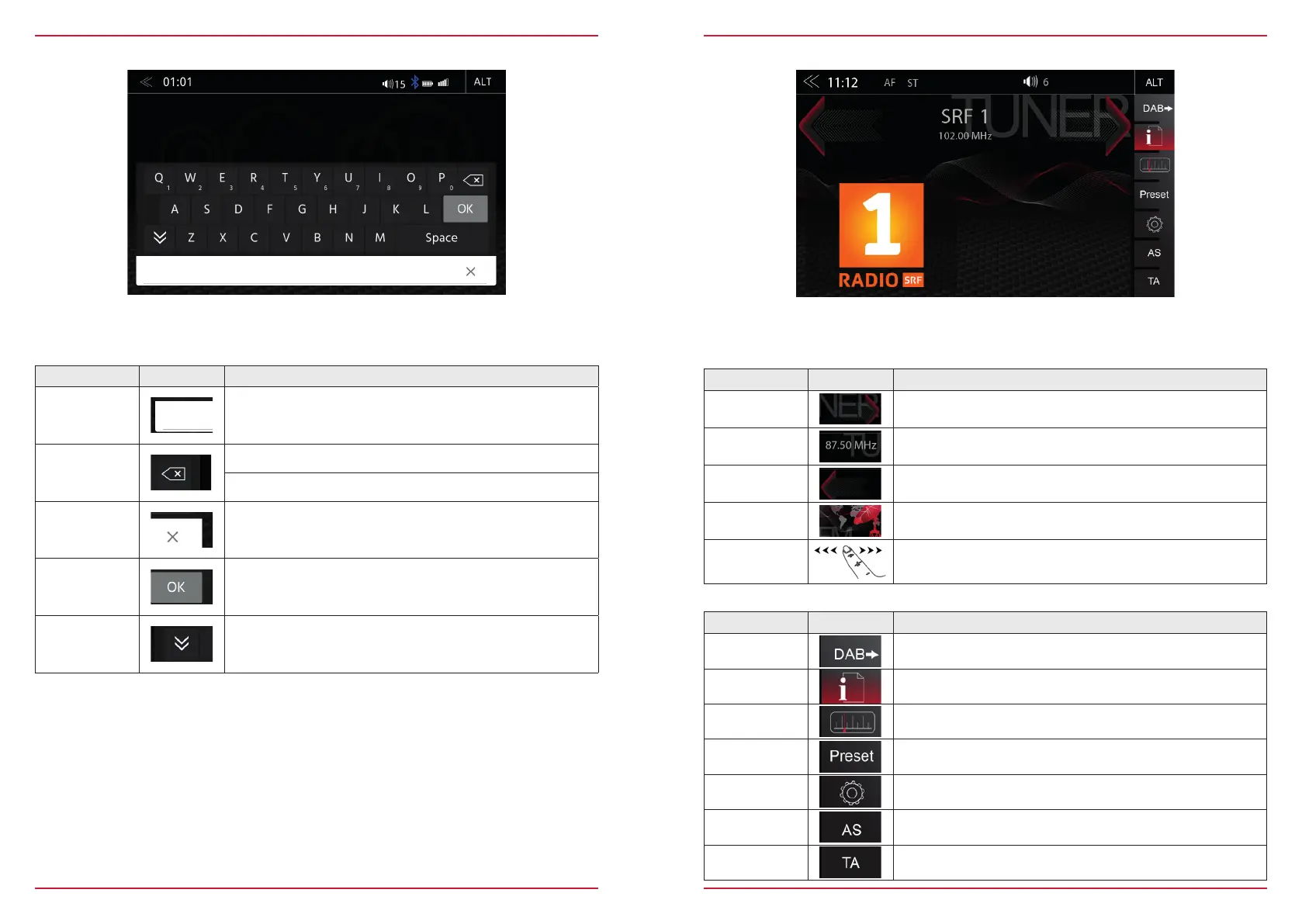 The FM RDS source menu offers a control-/operating section on the right hand side, for fast and