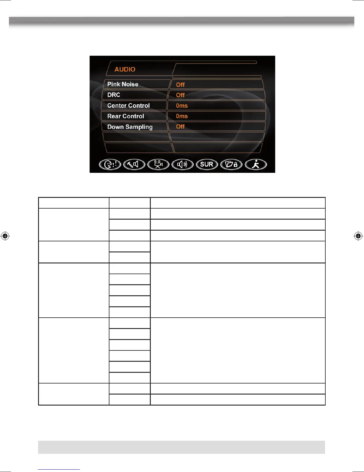 ■ When down sampling is on, the audio output signal will be converted to 48kHz. When