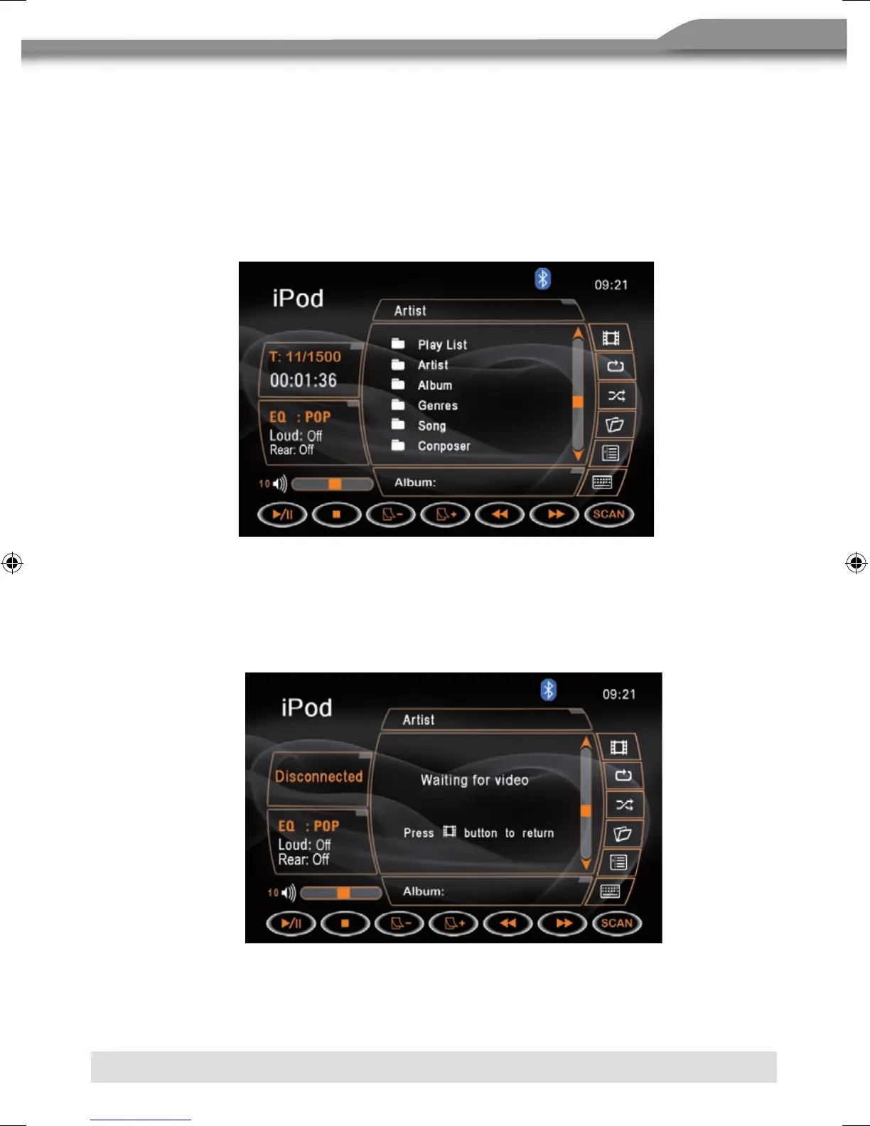 ■ If there are videos on the iPod, you have to select them on iPod, otherwise there will be no