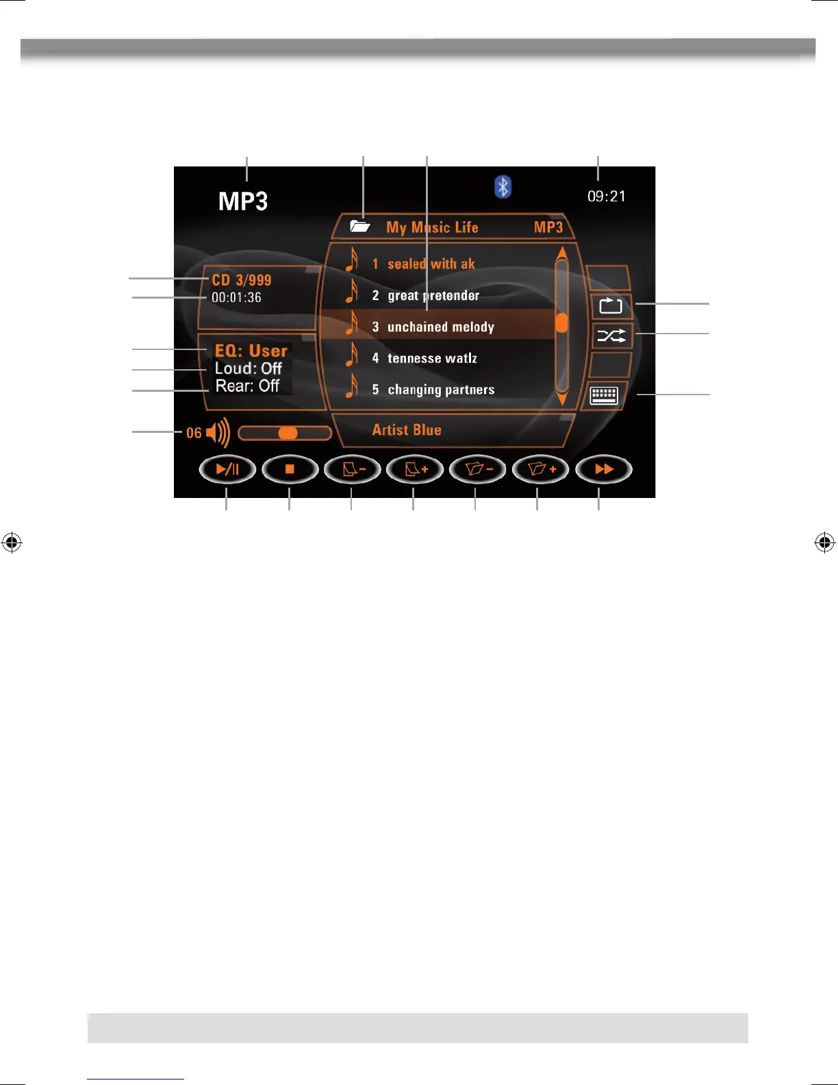 16. Anzeige der abgelaufenen Spielzeit des gerade wiedergegebenen Tracks.