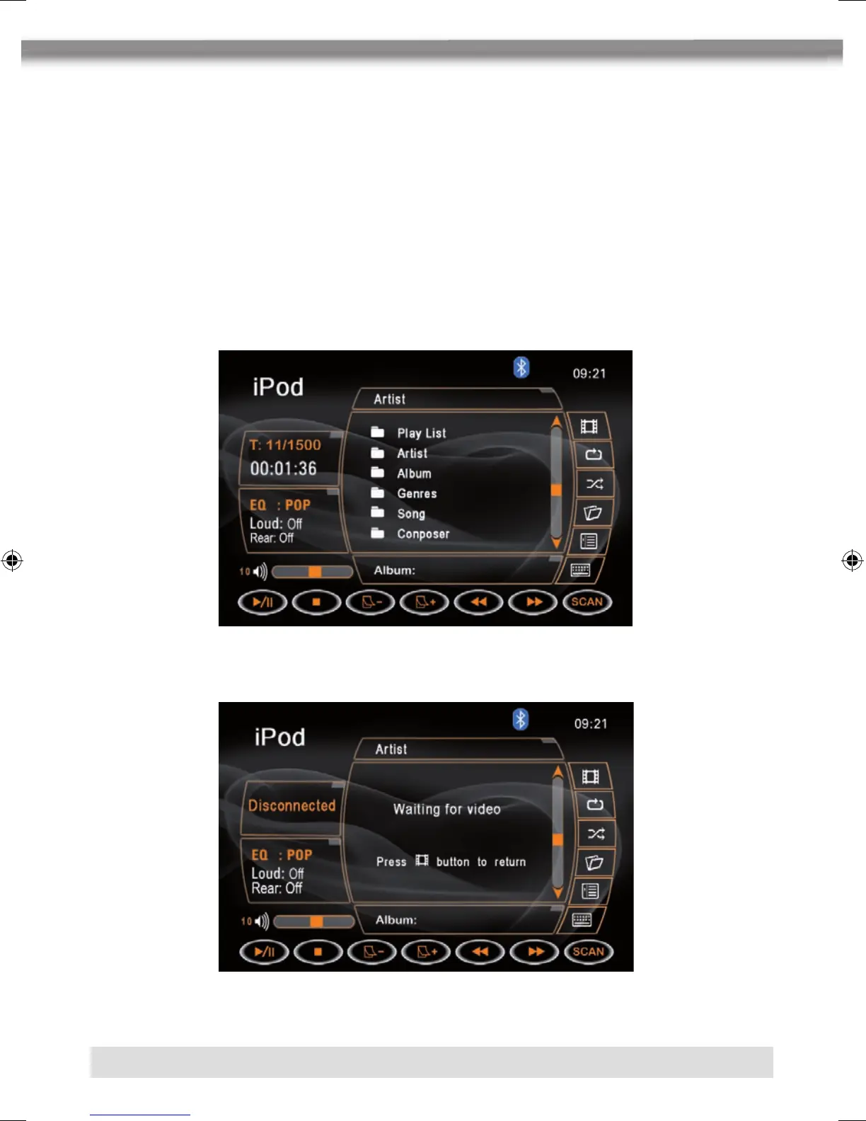 j Icon, um das Inhaltsverzeichnis des iPods anzuzeigen.