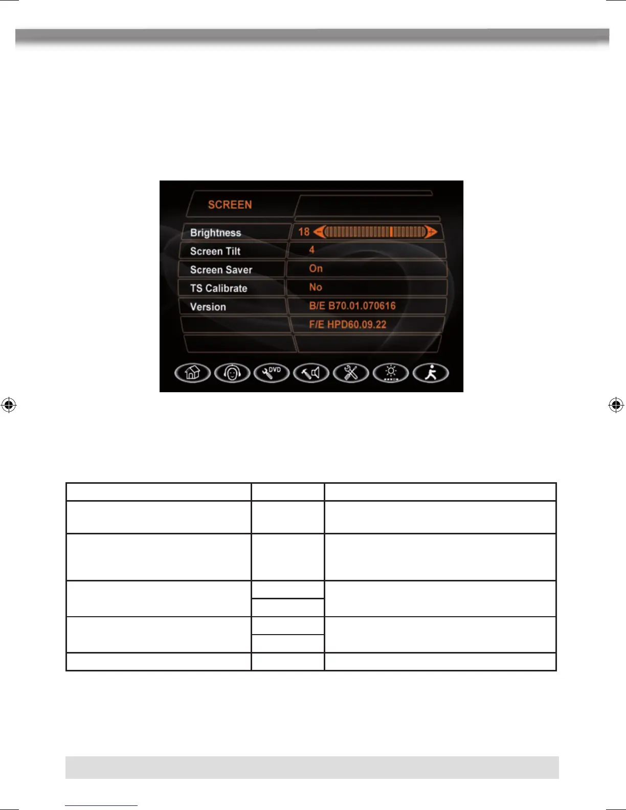 O button on the bottom of the screen to access the screen setup.