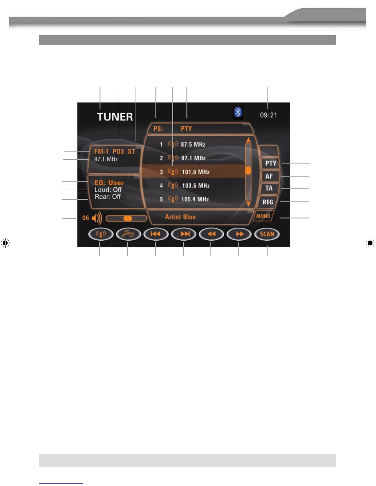 Program type indicator: Touch to activate/deactivate the PTY function.