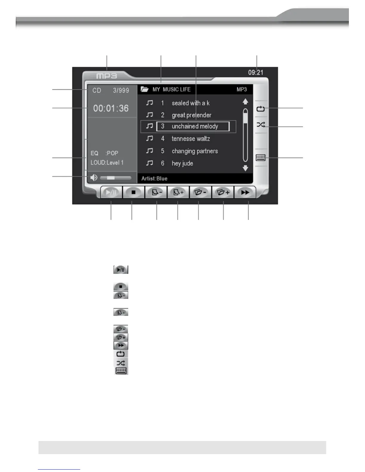 2. Name der gerade wiedergegebenen Disk.