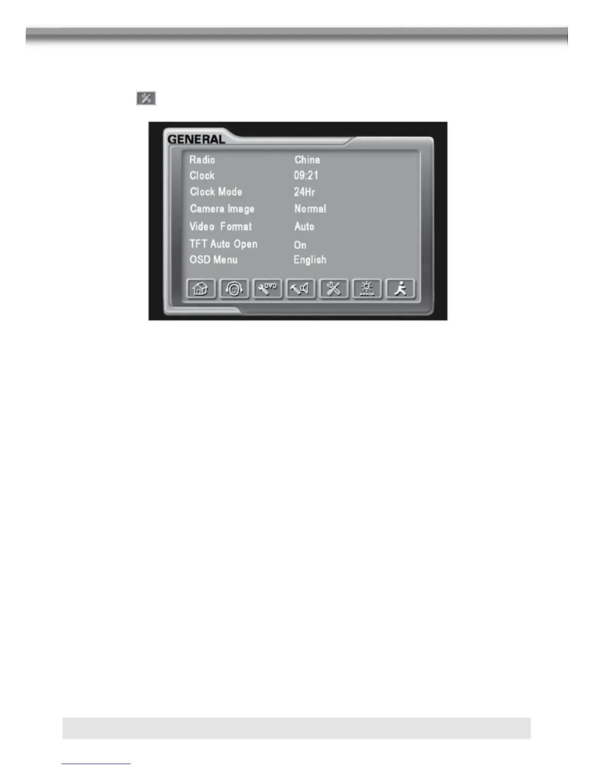 ■ Select the button on the screen to access the GENERAL setup.