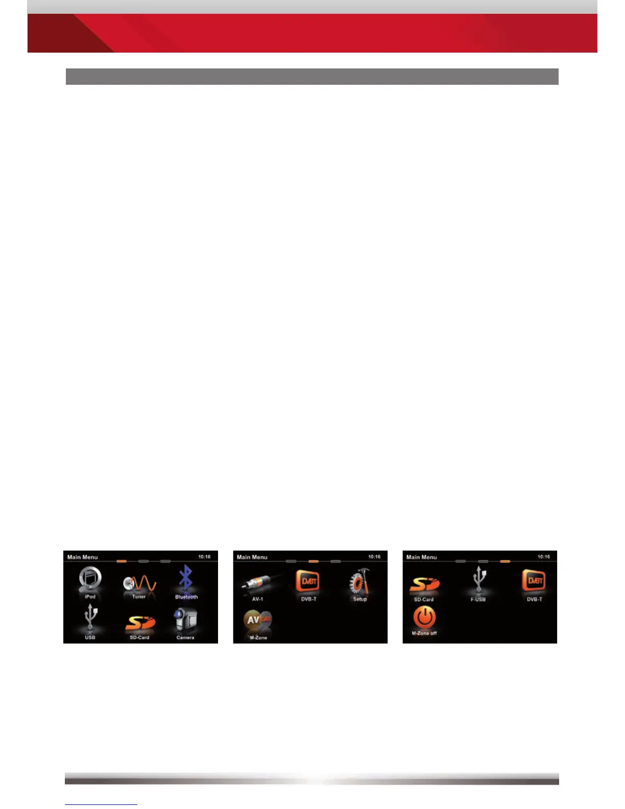 drei Seiten des Hauptmenüs, inklusive der M-Zone.
