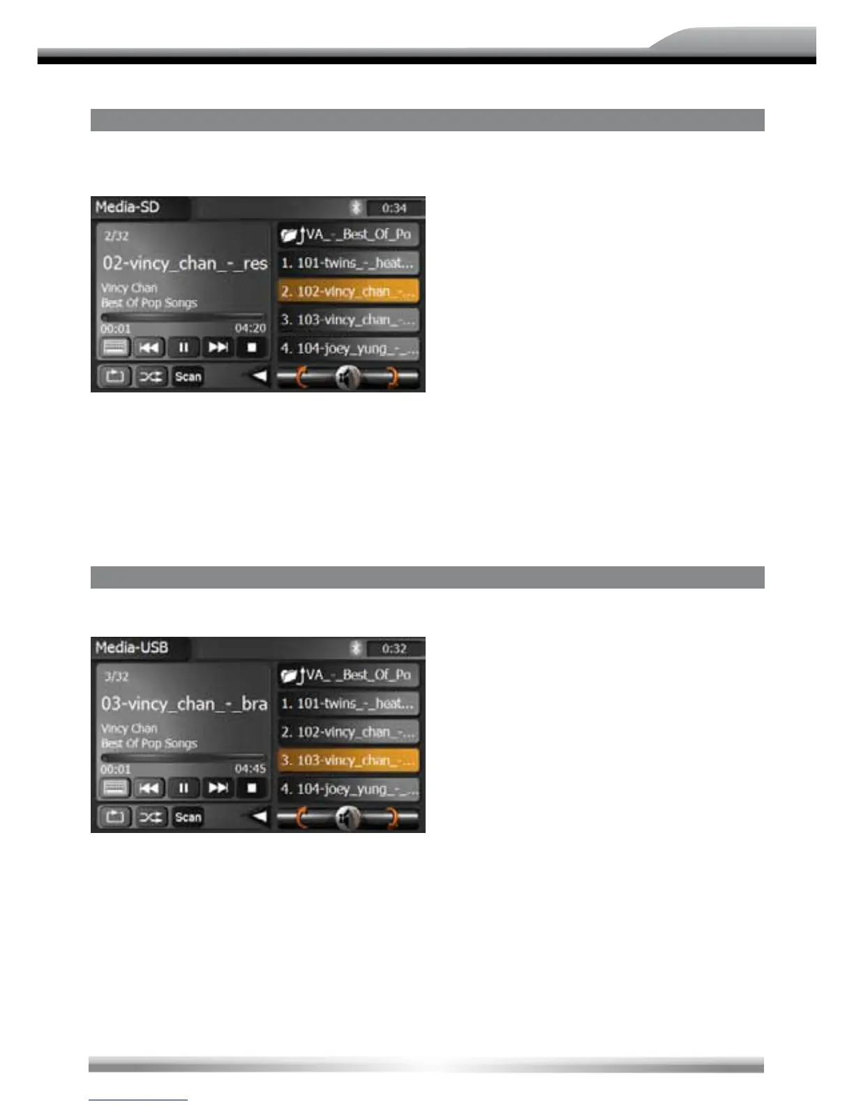 ■ The interface and the operation of the SD card mode is similar to the CD/MP3/WMA mode.