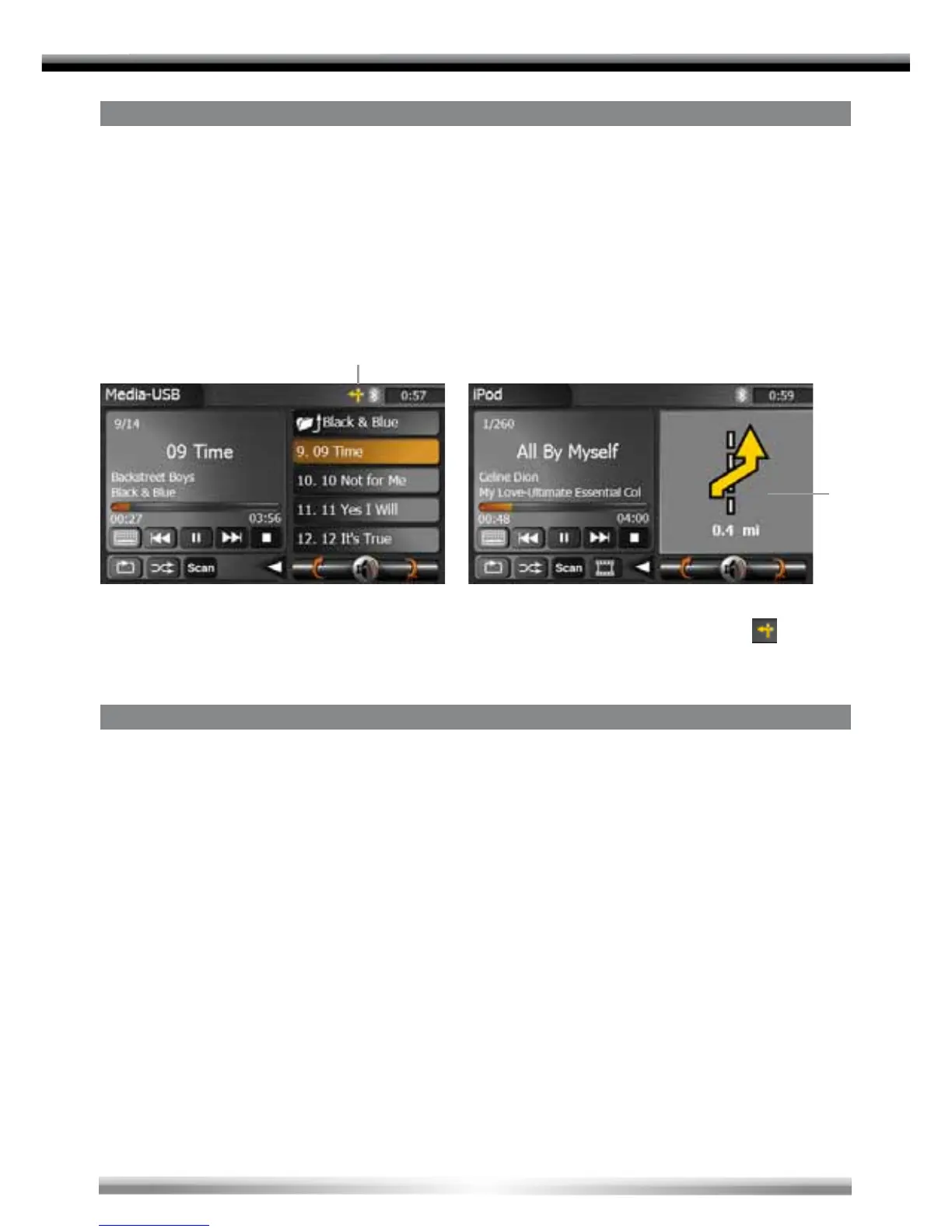 ■ In navigation mode, it's possible to play back an audio source. In this case, the audio