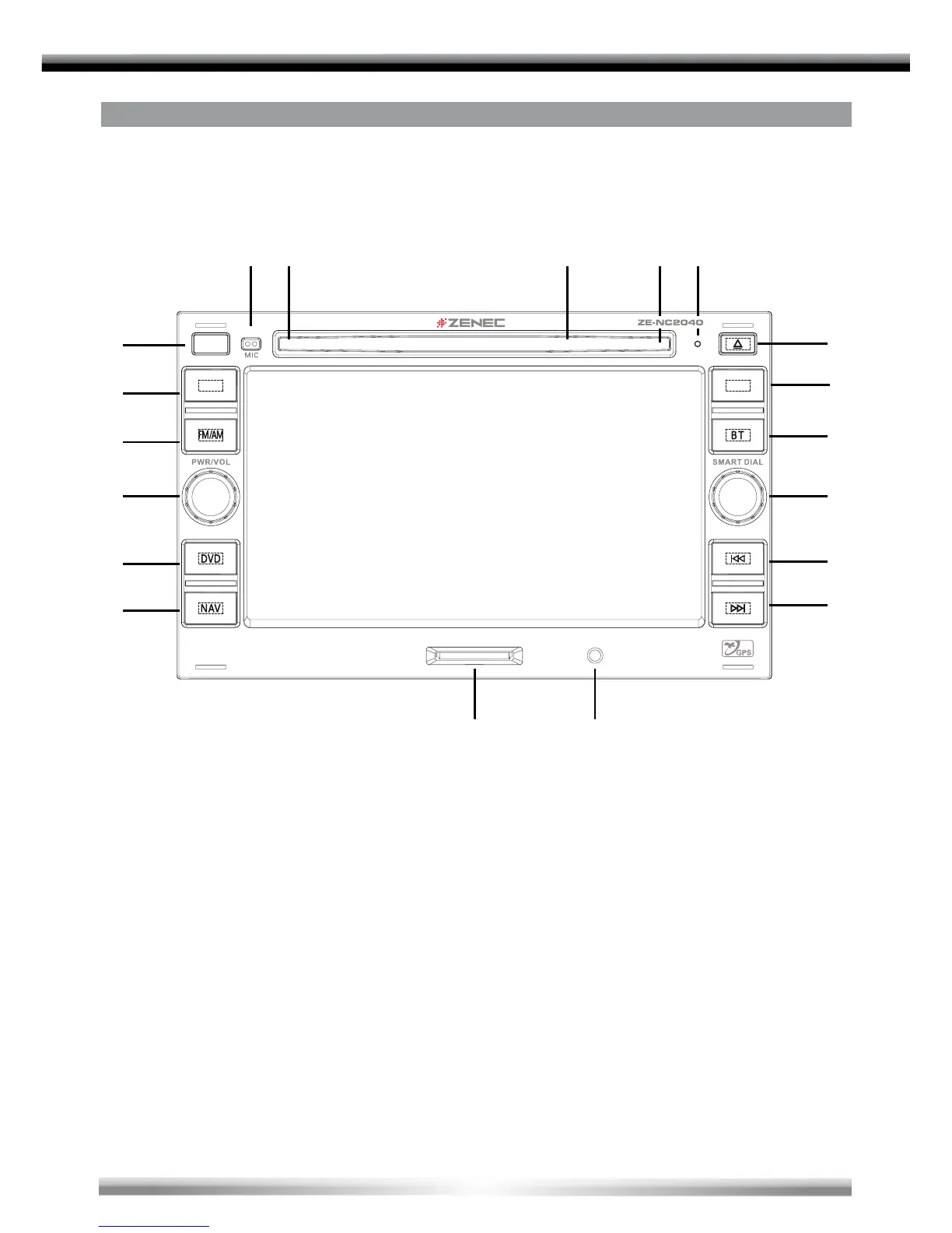 ZENEC ZE-NC2040 - Tasten des Bedienteils