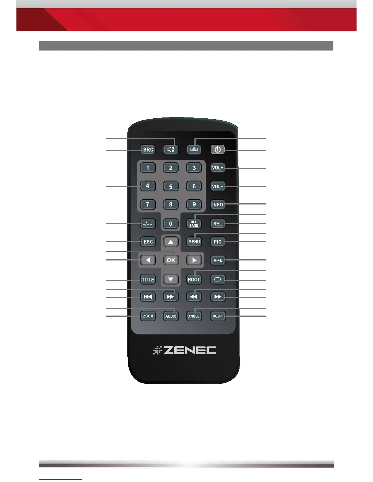 ZENEC ZE-NC3141D - Remote Control Main; Main Remote Control Buttons