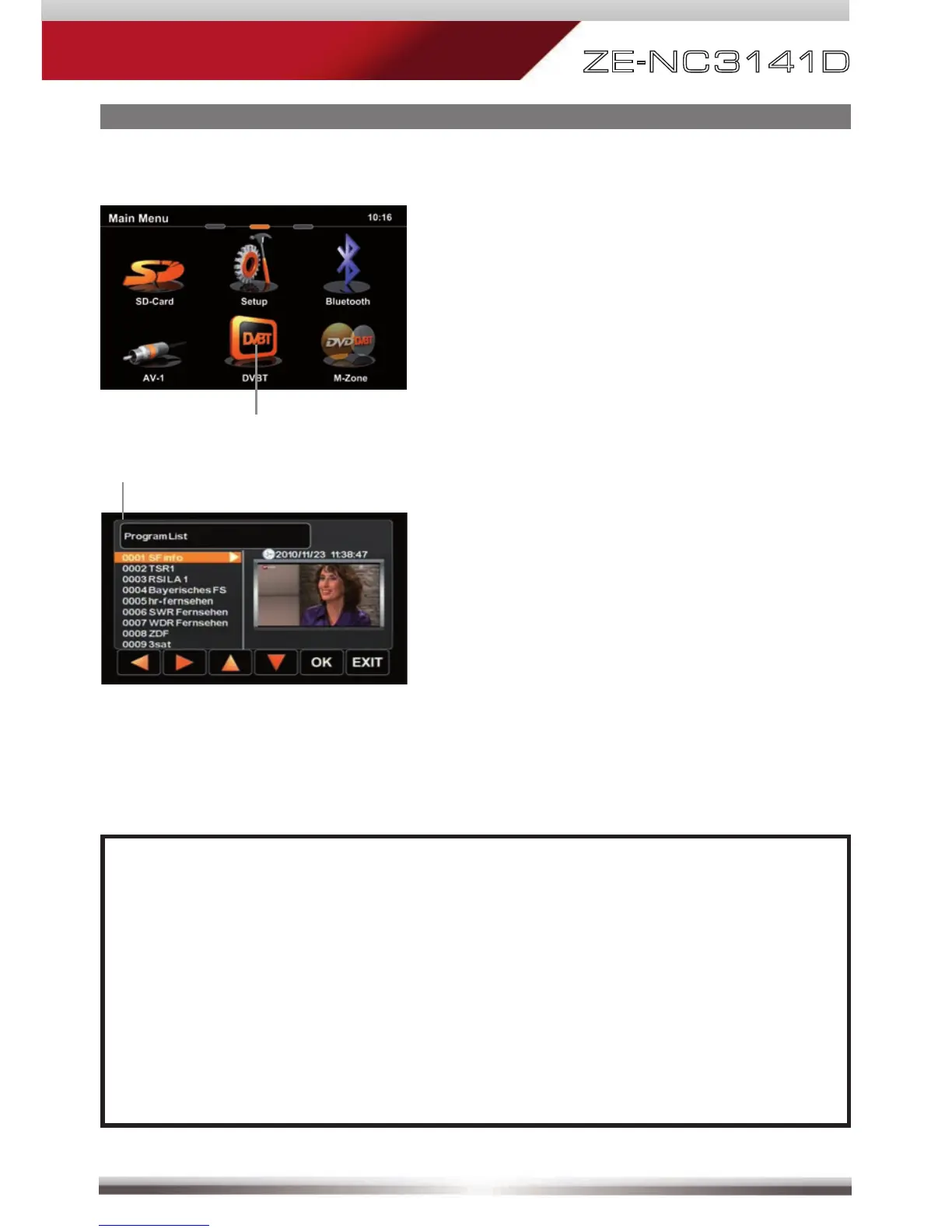 ■ For DVB-T reception you need to connect an external ZENEC DVB-T