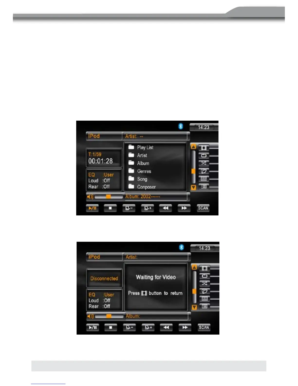 j Icon, um das Inhaltsverzeichnis des iPods anzuzeigen.
