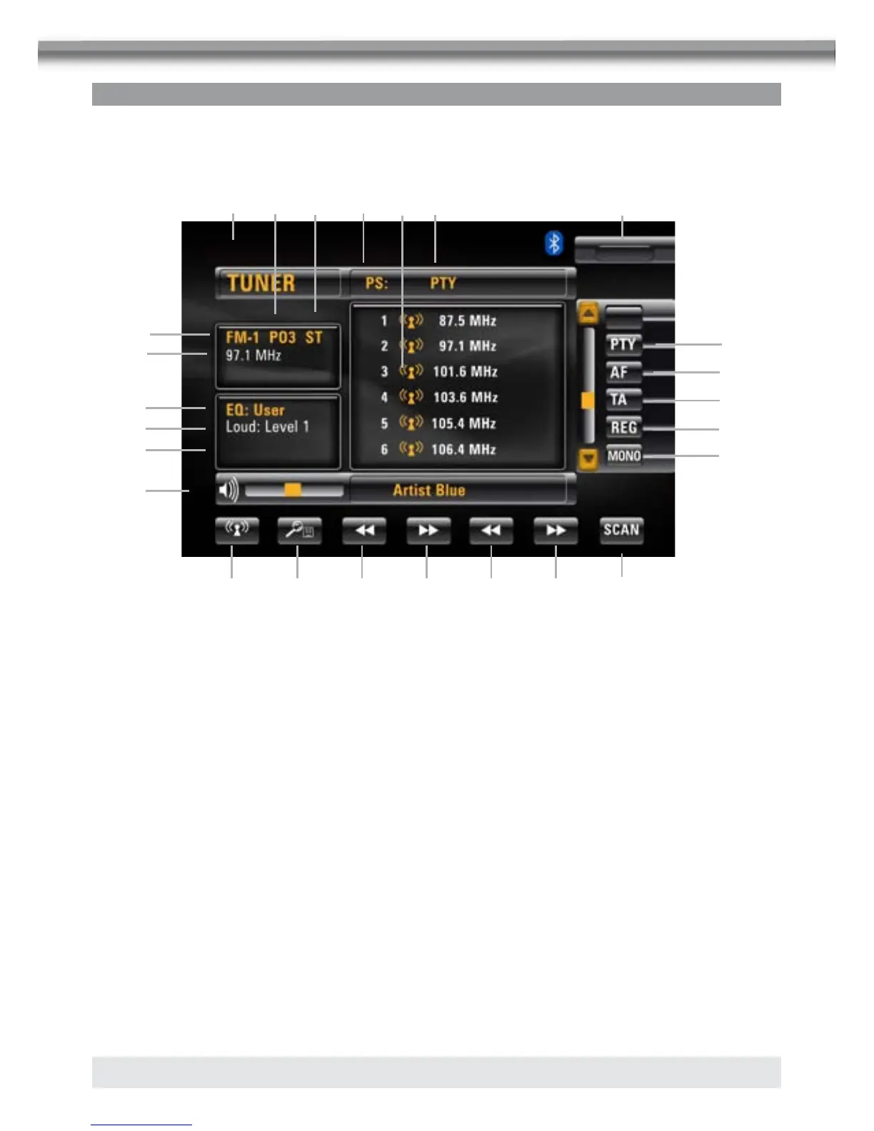 Program type indicator: Touch to activate/deactivate the PTY function.