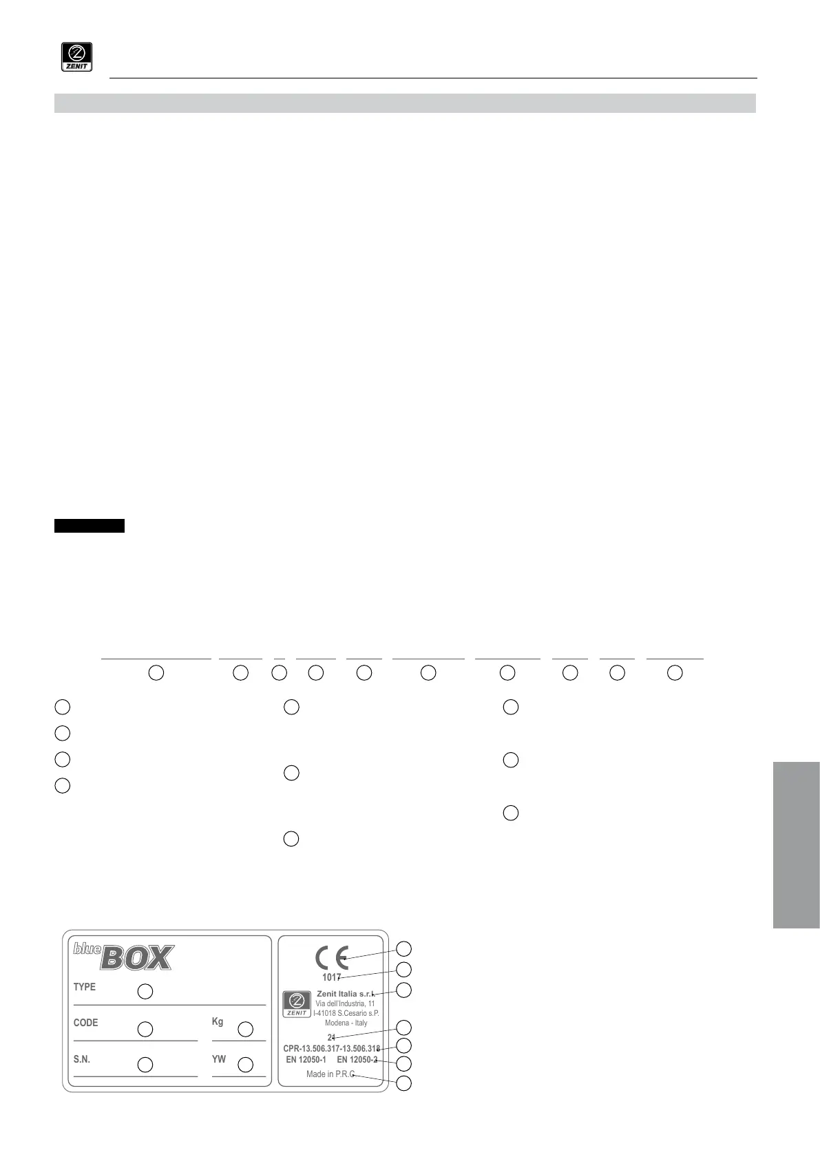 Junto con este manual se suministra una etiqueta adhesiva plateada que contiene las características del producto indicadas en la placa.