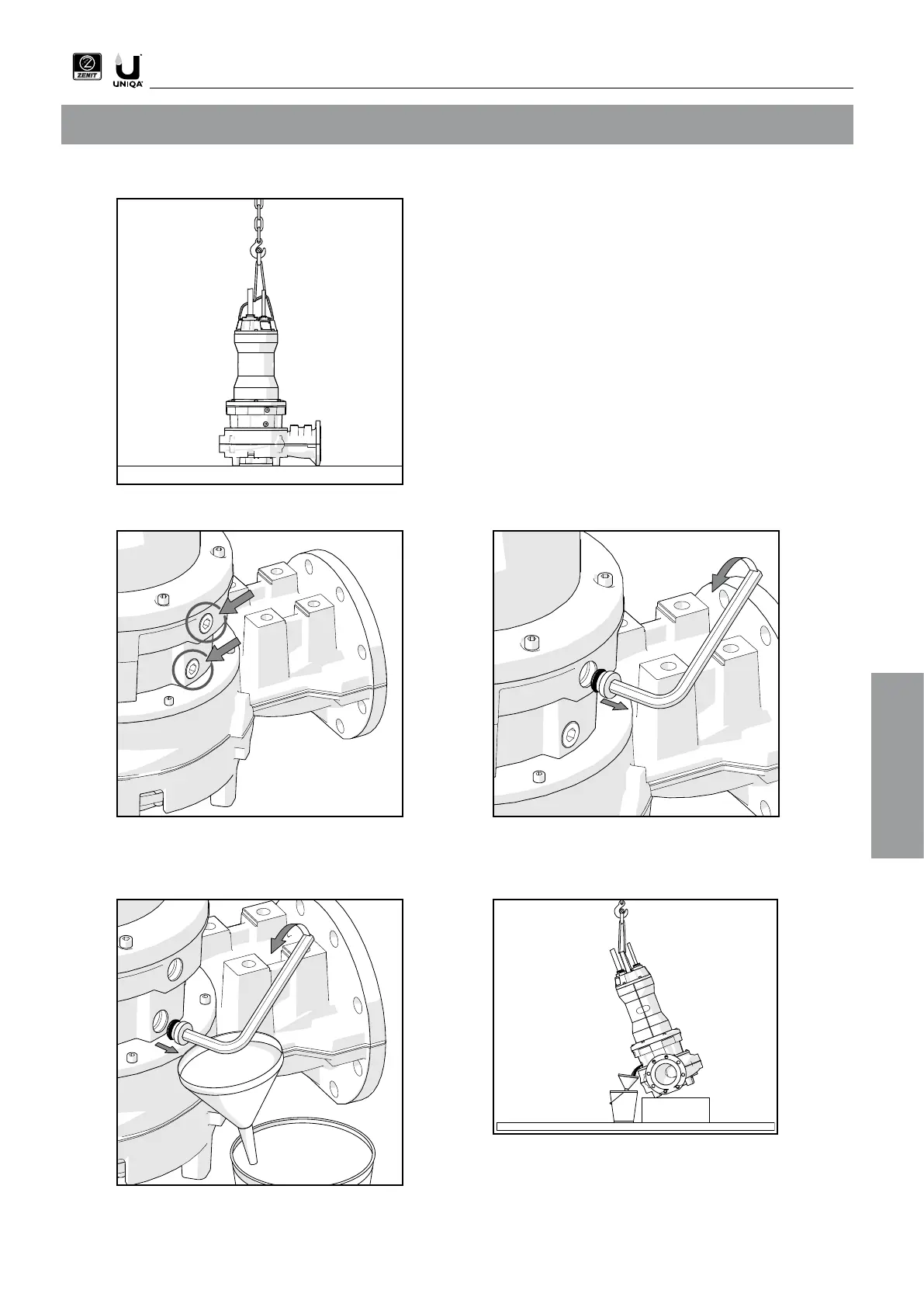3. Den oberen Verschluss der Ölkammer abschrauben.2. Die Verschlüsse der Ölkammer der Elektromotorpumpe