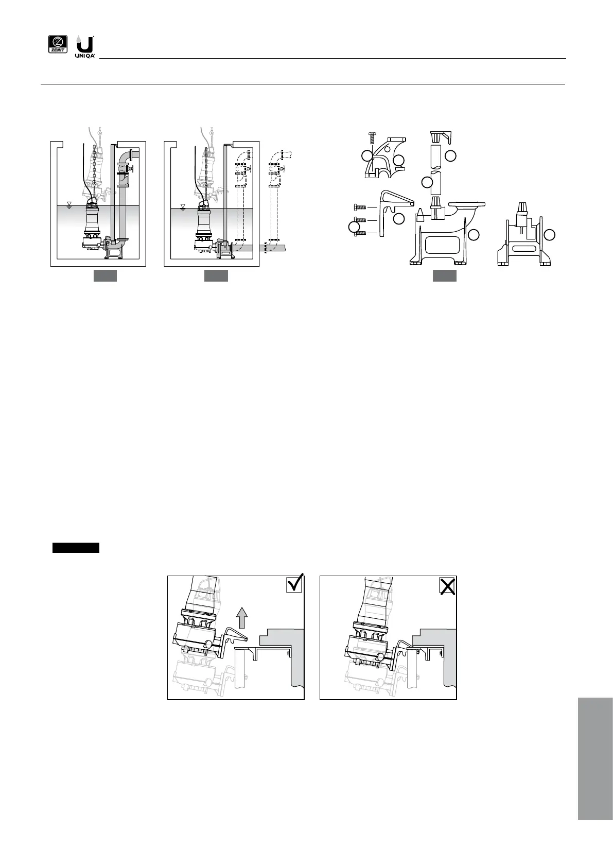 Этот тип установки позволяет быстро извлечь электронасос из резервуара и снова установить его на место без