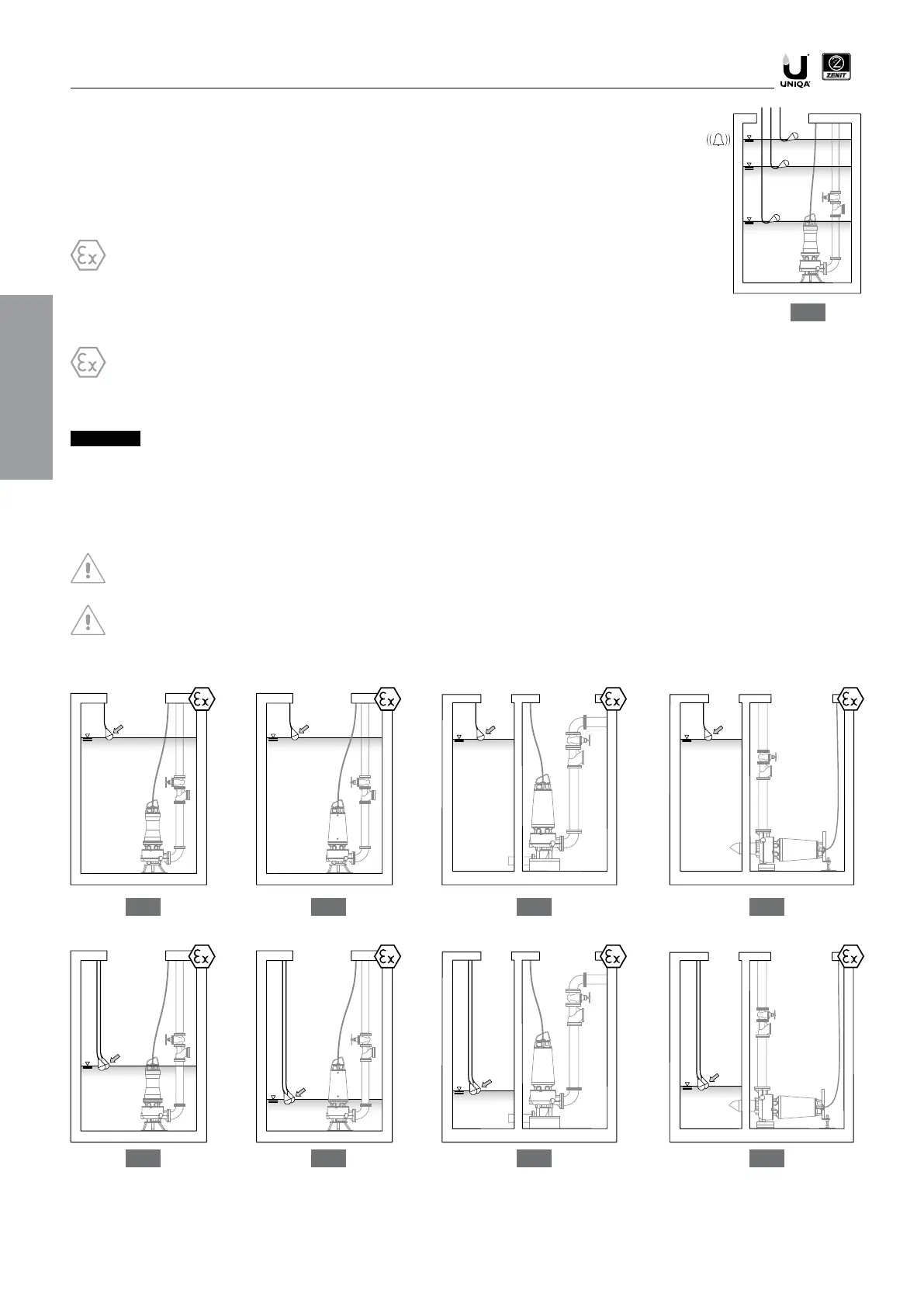 Float switches must be installed in such a way that the correct minimum liquid level is guaranteed.