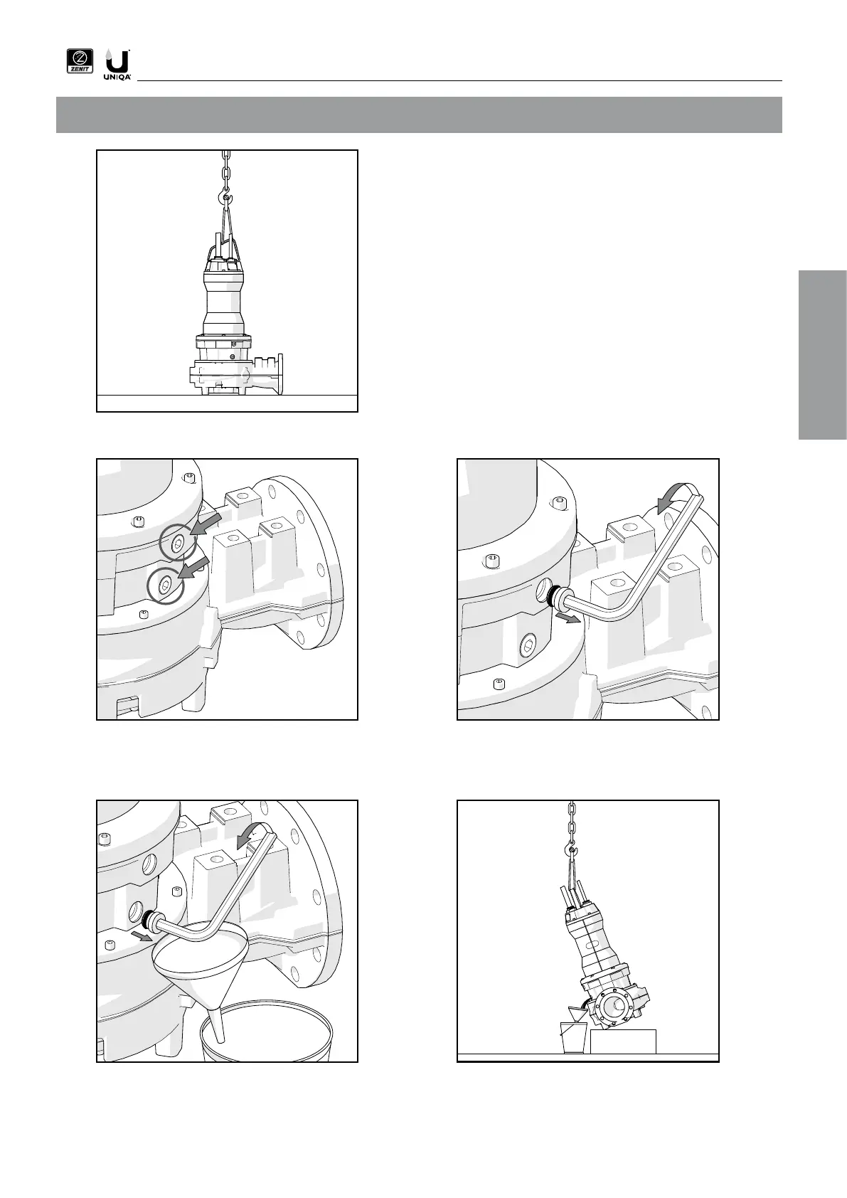 4. Unscrew the plug on the bottom of the oil sump. 5. Allow the oil to drain into a vessel of suitable size,
