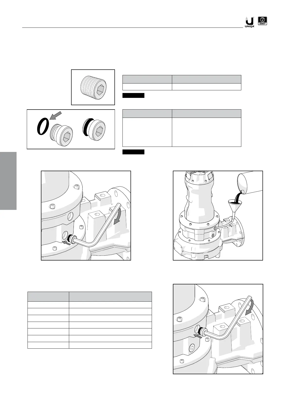 7. Visser le bouchon inférieur de la chambre à huile. 8. Remplir la chambre d'huile des garnitures