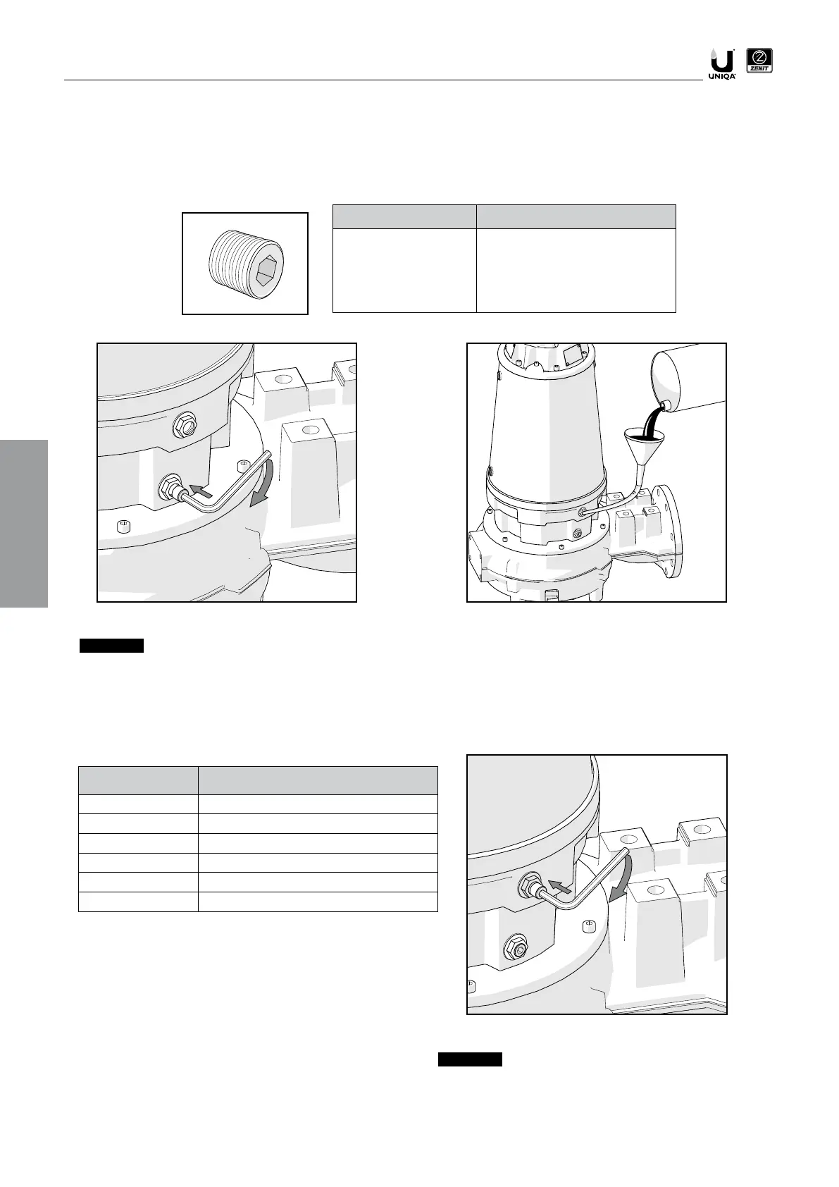 • Huile propre et sans eau : les garnitures mécaniques sont encore en bon état. Verser l'huile neuve.