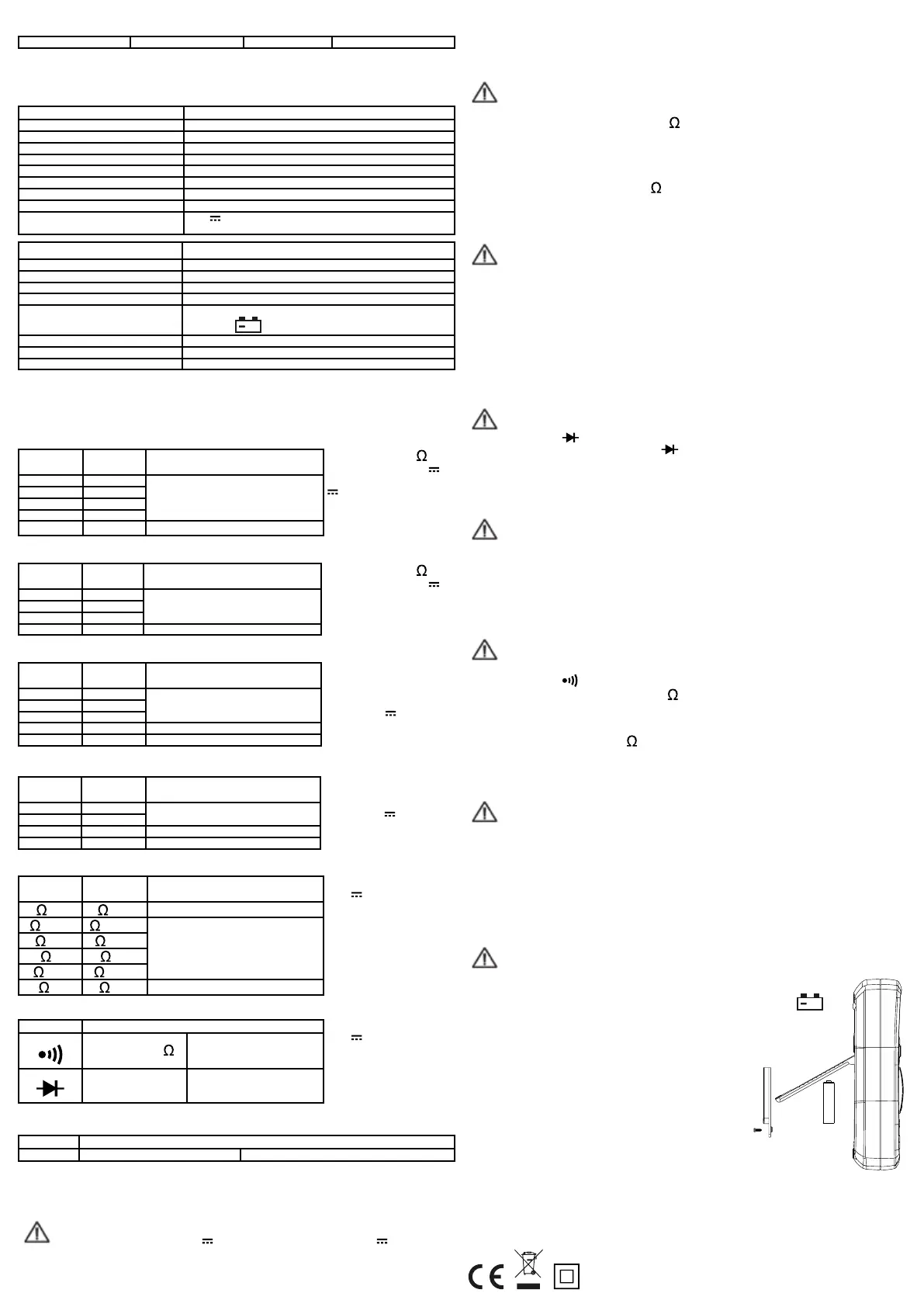 Warning - Before opening the back cover, switch off the device and disconnect the test probes from the
