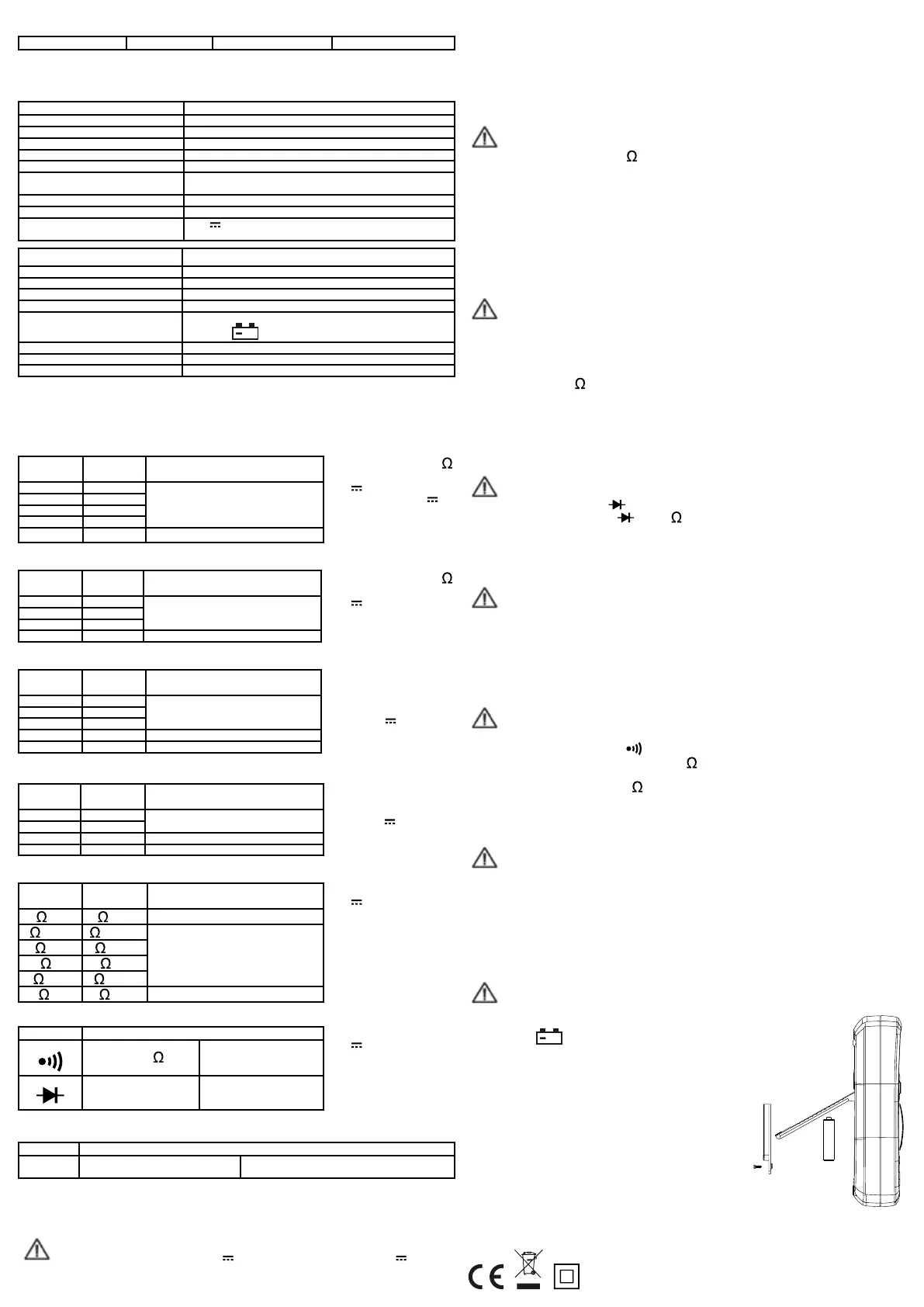 Aviso - Tensão máxima de entrada : 600 V ou V~ rms (para a faixa 200 mV : 250 V ou V~