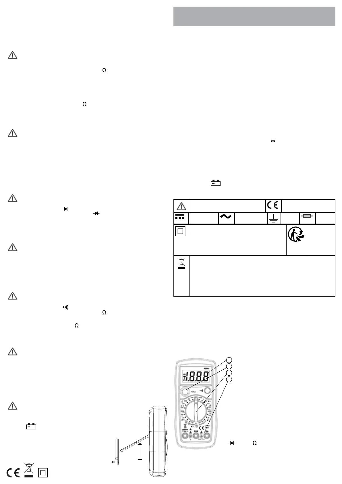 • Ontkoppel de circuitsnoeren voordat u de functie en / of het bereik wijzigt.