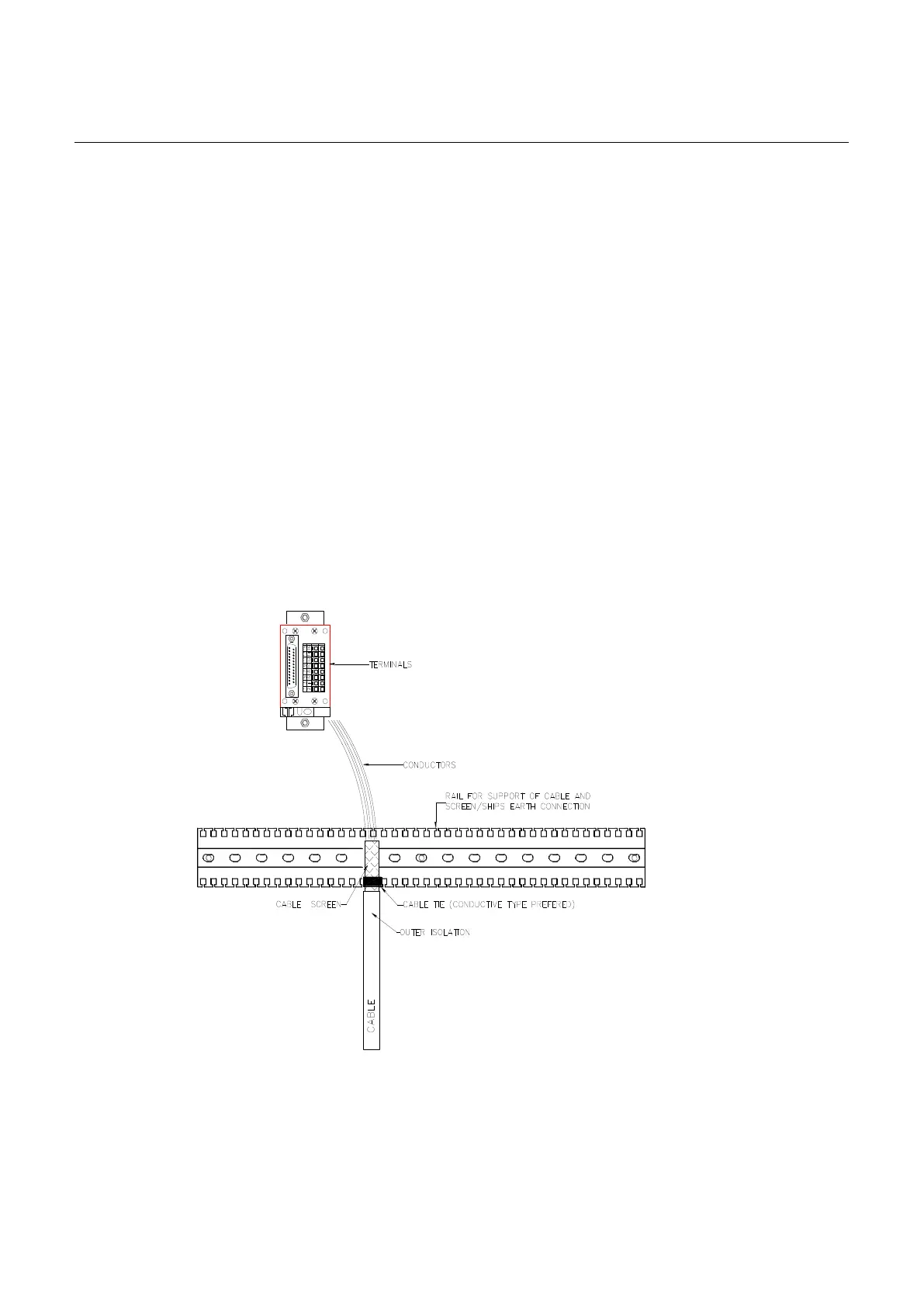 The cable outer screens are to be terminated as shown. Conductive cable ties are recommended to