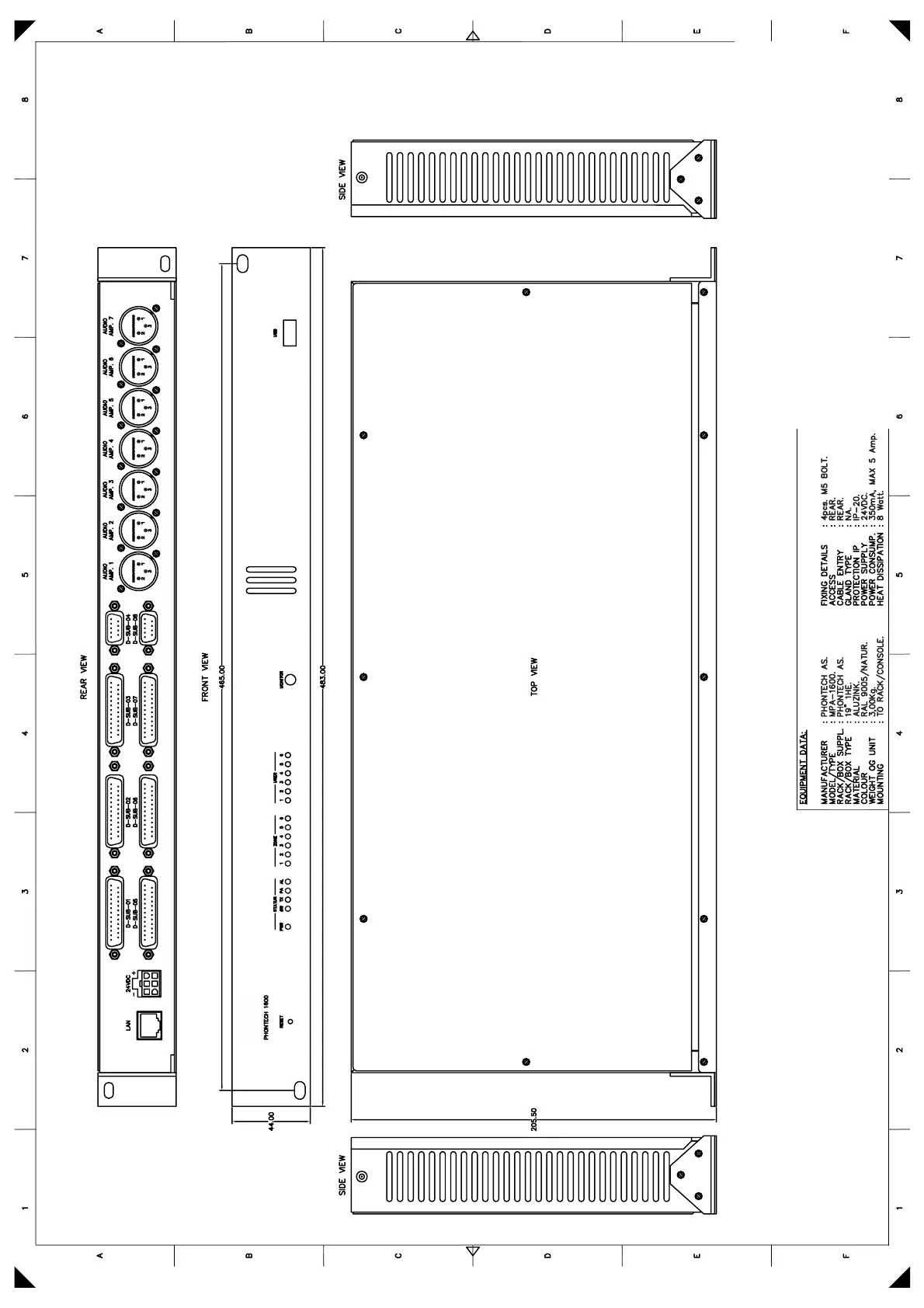 Zenitel Phontech MPA 1601 - MPA 1600 OPERATION UNIT, Mechanical Layout (03118-001-ML)