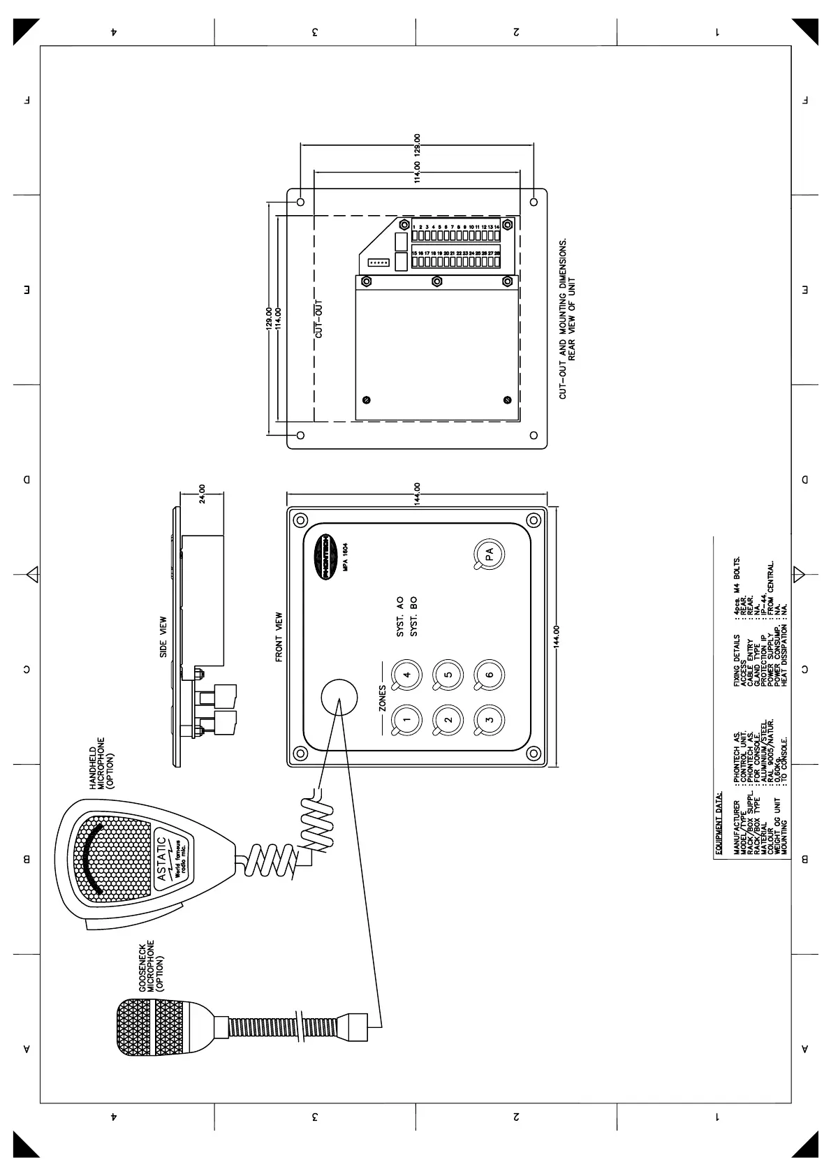 Zenitel Phontech MPA 1601 - MPA 1604 CONTROL UNIT Ver. 05827, Mechanical Layout (03118-038-ML)