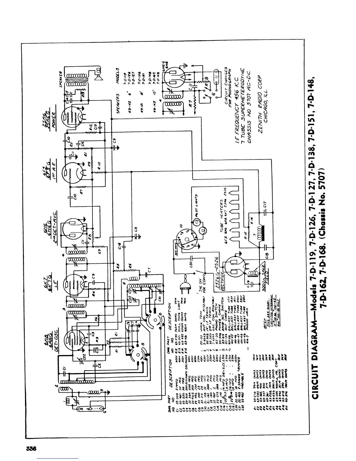 Zenith 1937 - 7-Tube Superheterodyne Chassis 5707 Circuit Diagram